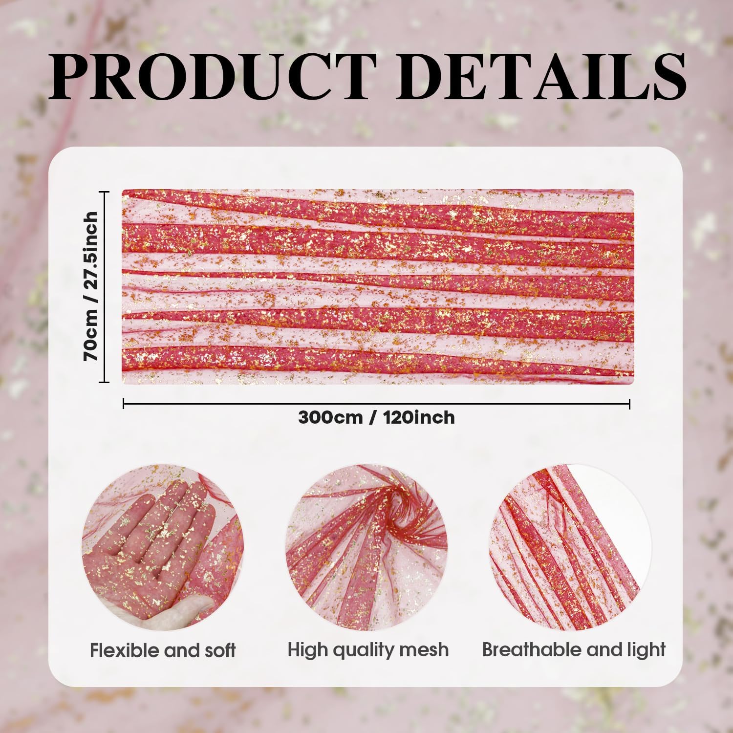 Artoid Mode 3PCS Red Gold Gauze Table Runner 120 Inch 10FT, Glitter Metallic Foil Sheer Dining Wedding Anniversary Holiday Table Decor for Home Party