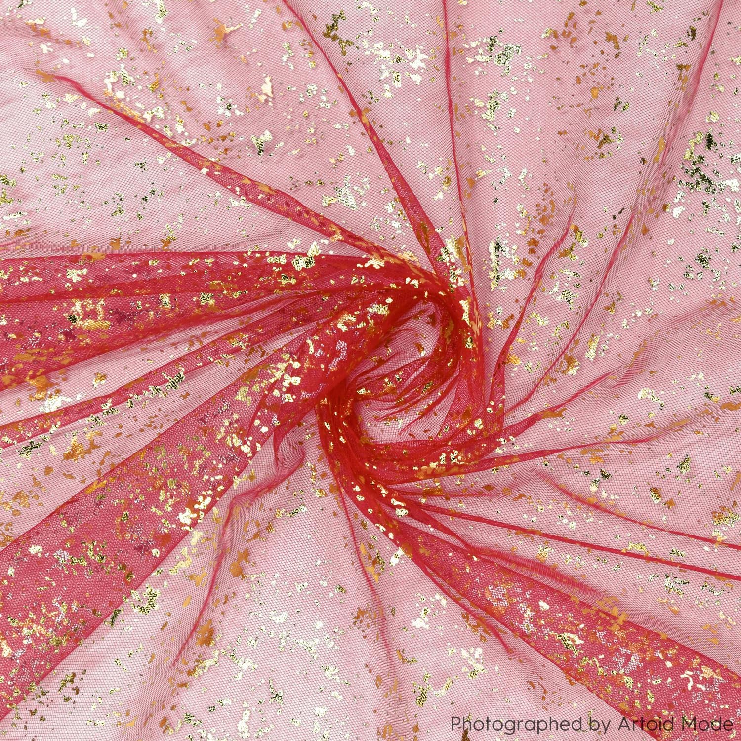 Artoid Mode 6PCS Red Gold Gauze Table Runner 120 Inch 10FT, Glitter Metallic Foil Sheer Dining Wedding Anniversary Holiday Table Decor for Home Party