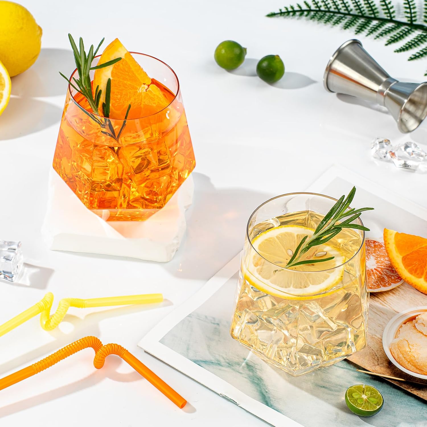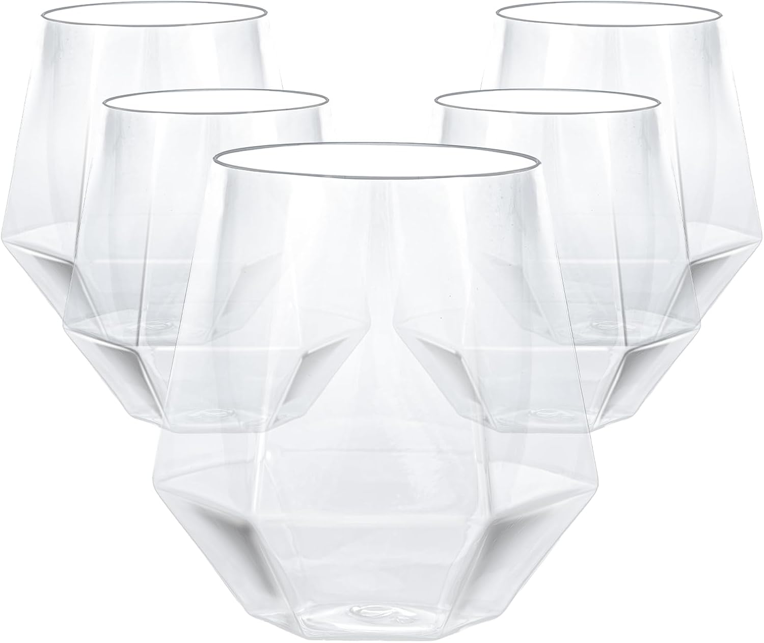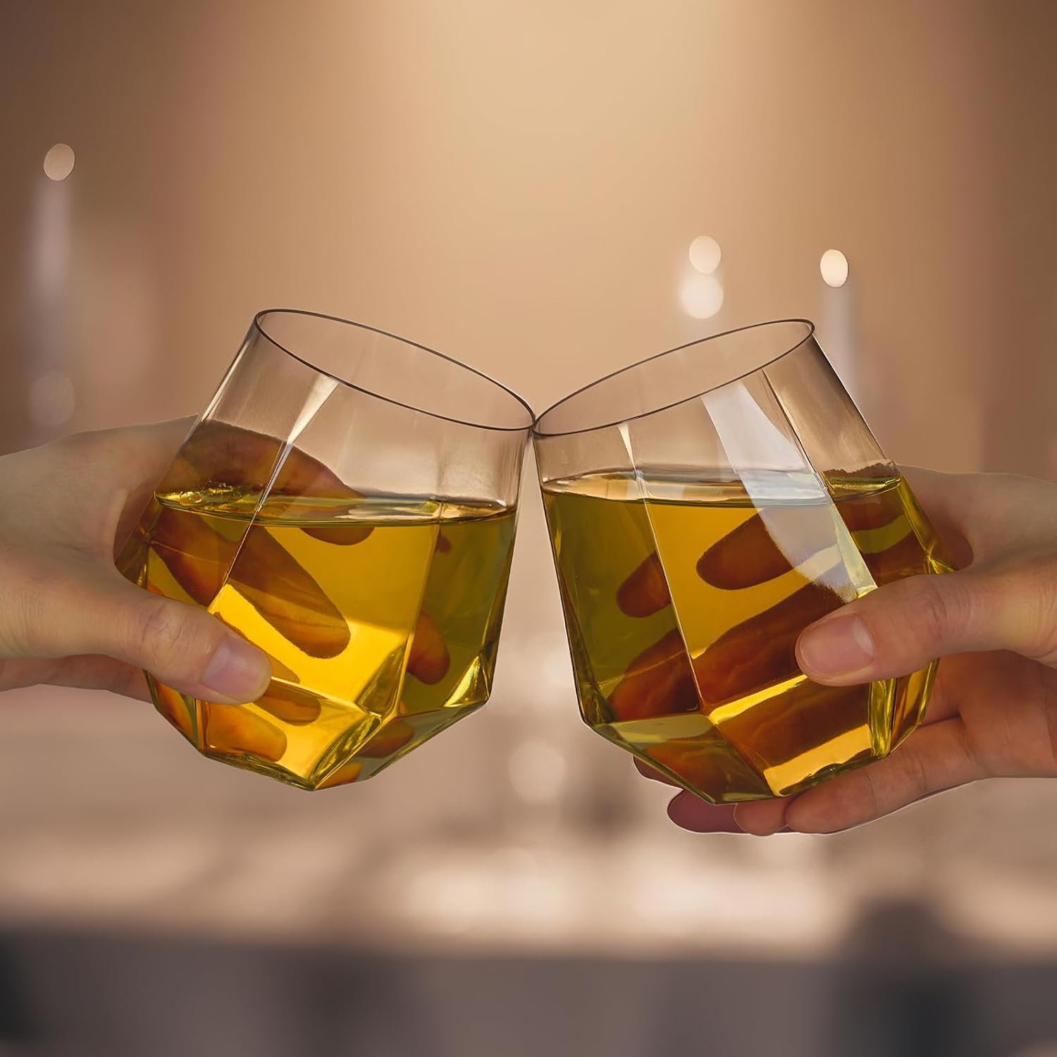 Goodluck 40 PCS Diamond Stemless Plastic Wine Whiskey Glasses, 12 Oz Disposable Cocktail Glasses, Suitable for Weddings, Birthday Parties, Family Gatherings, Bars, etc (Clear)