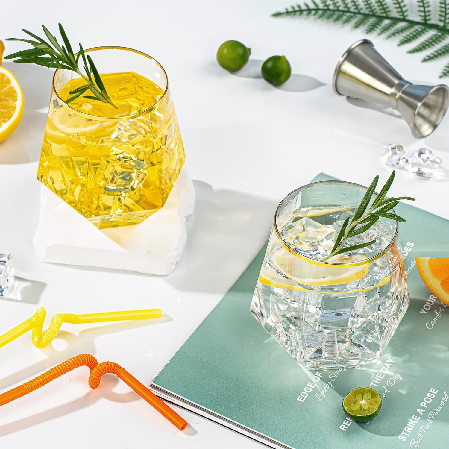 Goodluck 40 PCS Diamond Stemless Plastic Wine Whiskey Glasses, 12 Oz Disposable Cocktail Glasses, Suitable for Weddings, Birthday Parties, Family Gatherings, Bars, etc (Gold rimmed cups)