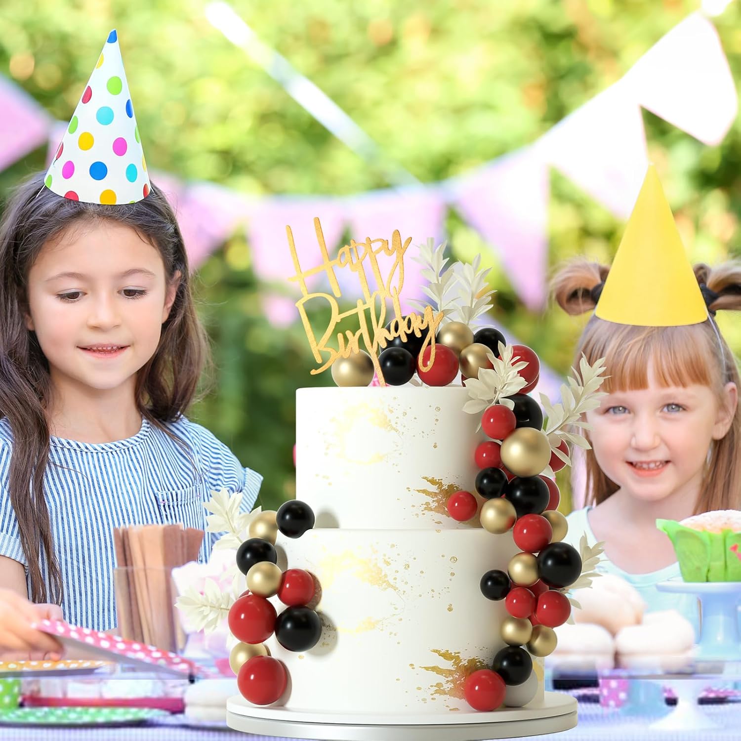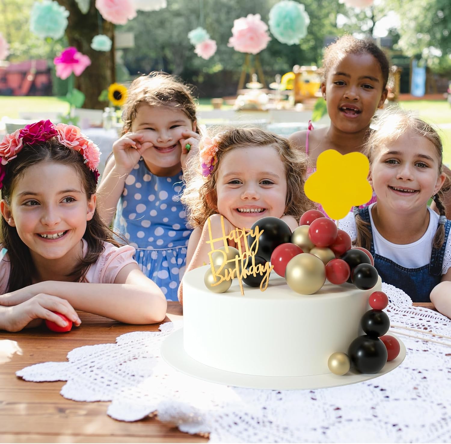 • Package included : 10pcs white grass cake toppers, 1pc happy birthday cake topper,14pcs red balls,14pcs black balls,14pcs gold balls