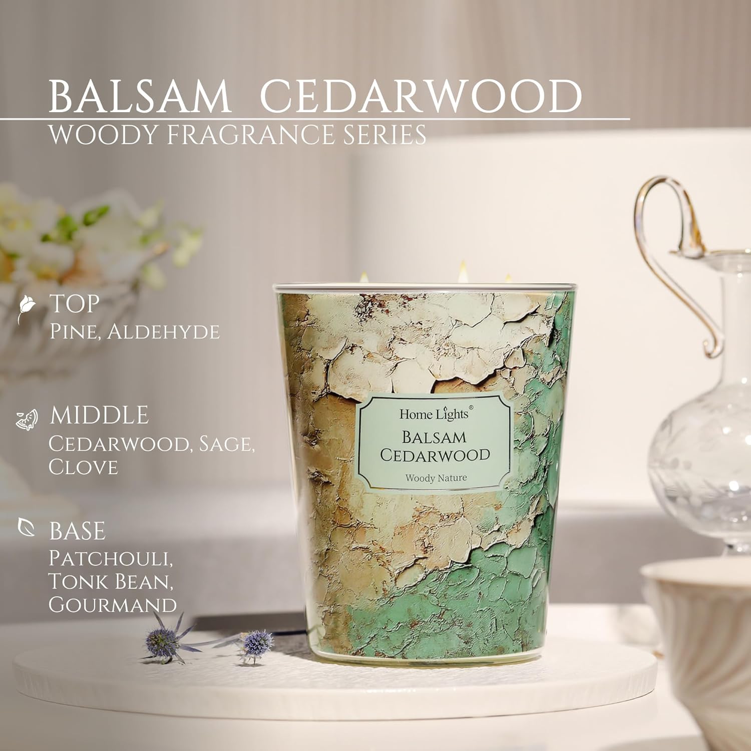 HomeLights Balsam Cedarwood Scented Candles | 34oz Soy Candles Industrial Chic 3-Wick Large Candle Jars | Ideal Candle Gifts for Events, Home Decor Stress, Relief & Relaxation