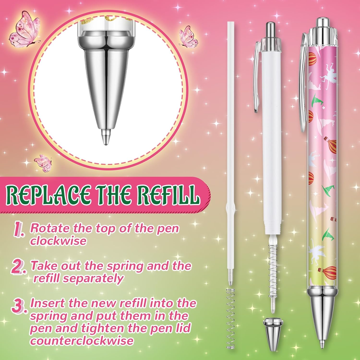 • Portable and Lightweight: length of witch pen is about 5.3 inches/ 13.5 cm, nib width: 0.6 inches/ 1.4 cm, pen holder length: 1.6 inches/ 4 cm; Note: ballpoint pen ink is black ink; The ballpoint pen is lightweight, writes smoothly, holds comfortably, is very suitable for writing, and produces beautiful words