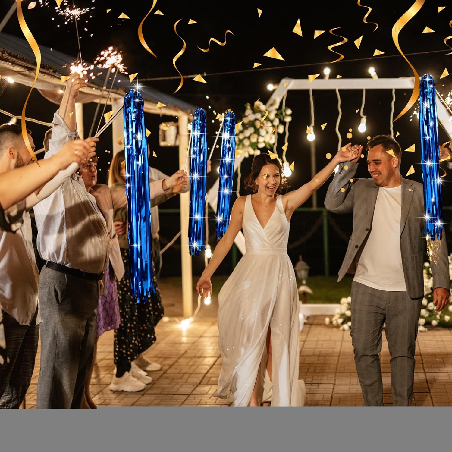 50 Pcs Wedding Fairy Wands with Bells Foil Tinsel Ribbon Stick Wands Tinsel Party Streamers with Bell Glittery Bridal Wedding Send Off Ideas Holiday Celebration (Dark Blue)