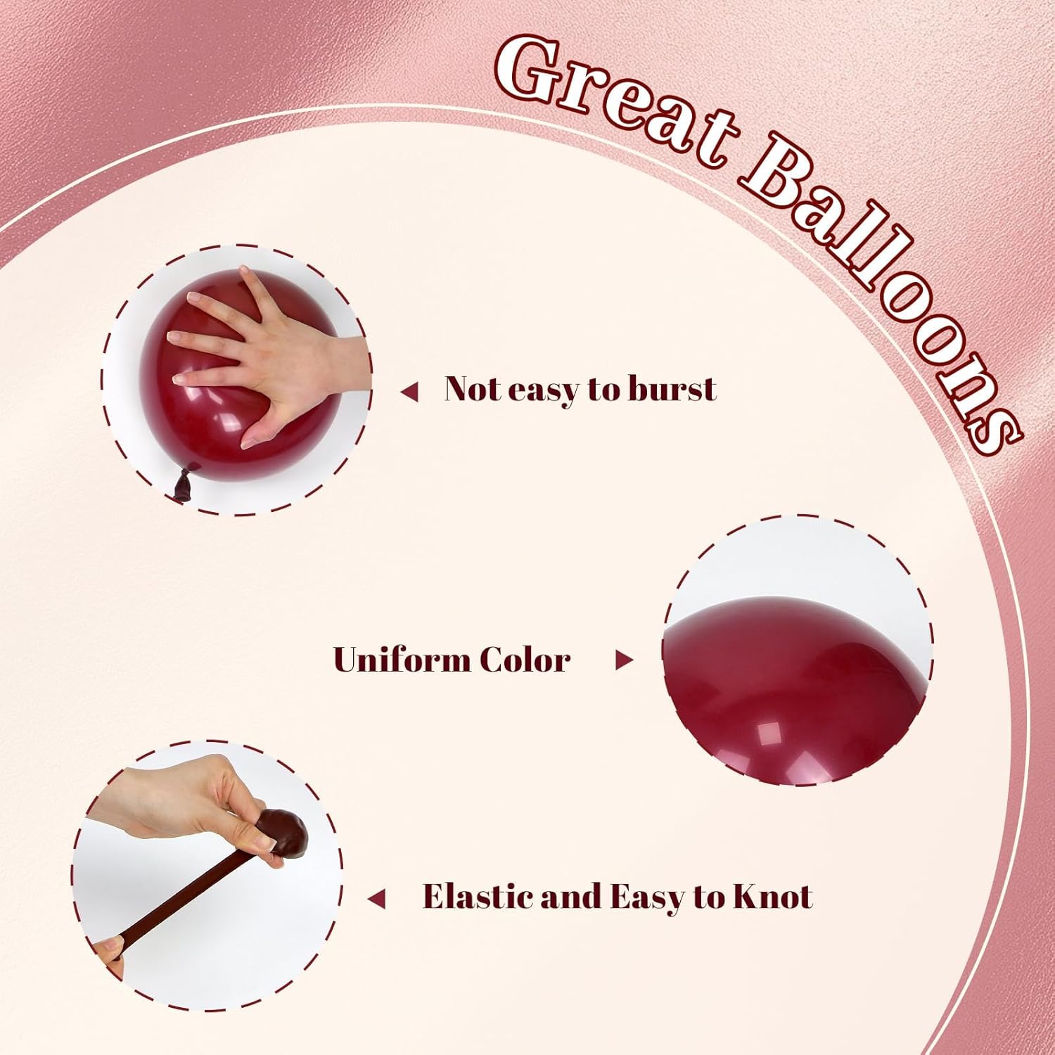 • Easy to Assemble: This kit comes with ribbons and glue dots, making it quick and easy to create party decorations. Simply inflate the burgundy and rose gold balloons and secure them in place with the glue dots. You'll have a beautiful balloon display ready in minutes, adding instant festive charm