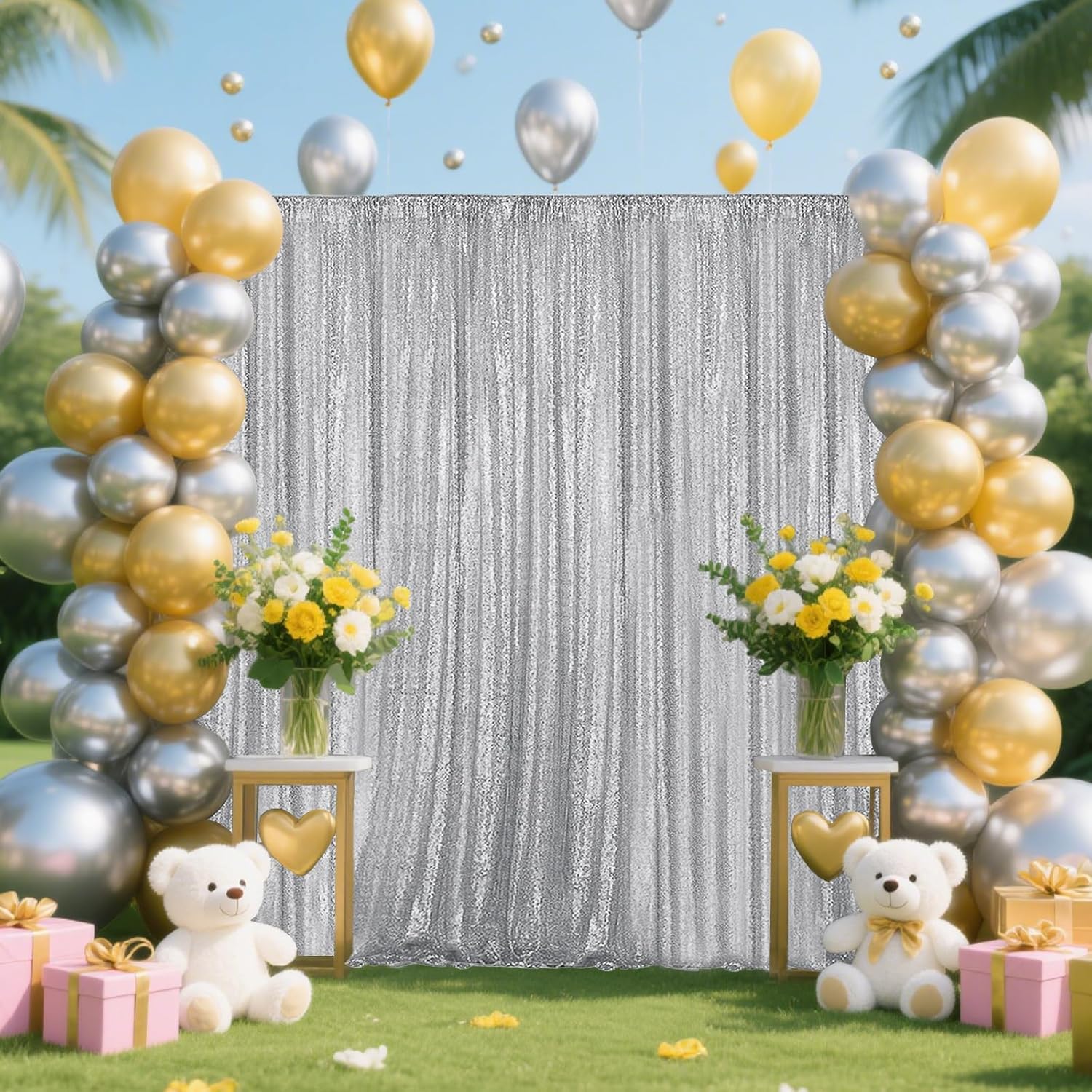 • Durable Material: The sequin backdrop is made of 3MM round density sequins with mesh fabric backing. All sides are well folded and sequins are not easy to drop which can be reused.