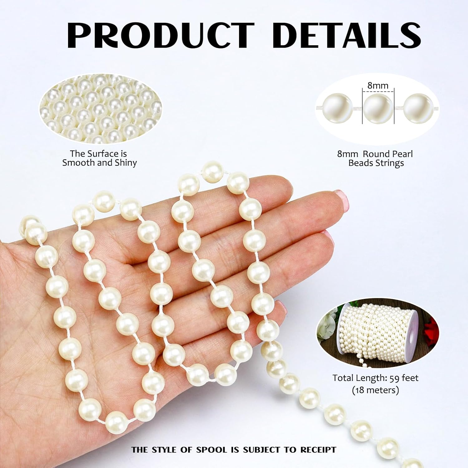 • You Will Receive a roll of faux pearl garland strings, totally 59 feet (18 meters) in length, the round pearl beads is 8mm in diameter
