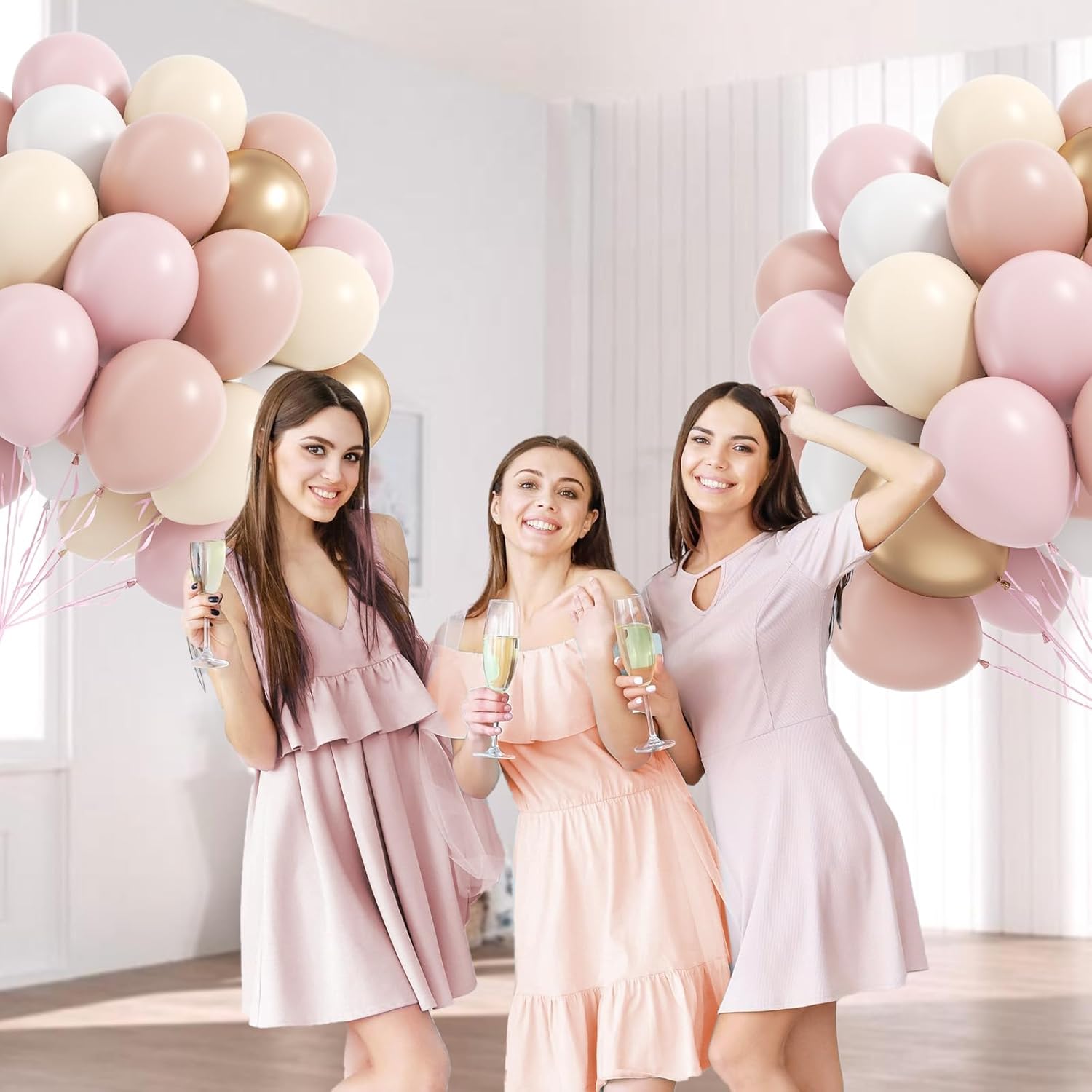 • What You Will Get: The package includes 12inch dusty pink balloonsx10, 12inch pastel pink balloonsx20, 12inch sand white balloonsx10, 12inch white balloonsx10, 10inch metallic gold balloonsx10, glue dotsx20, pink ribbonx1