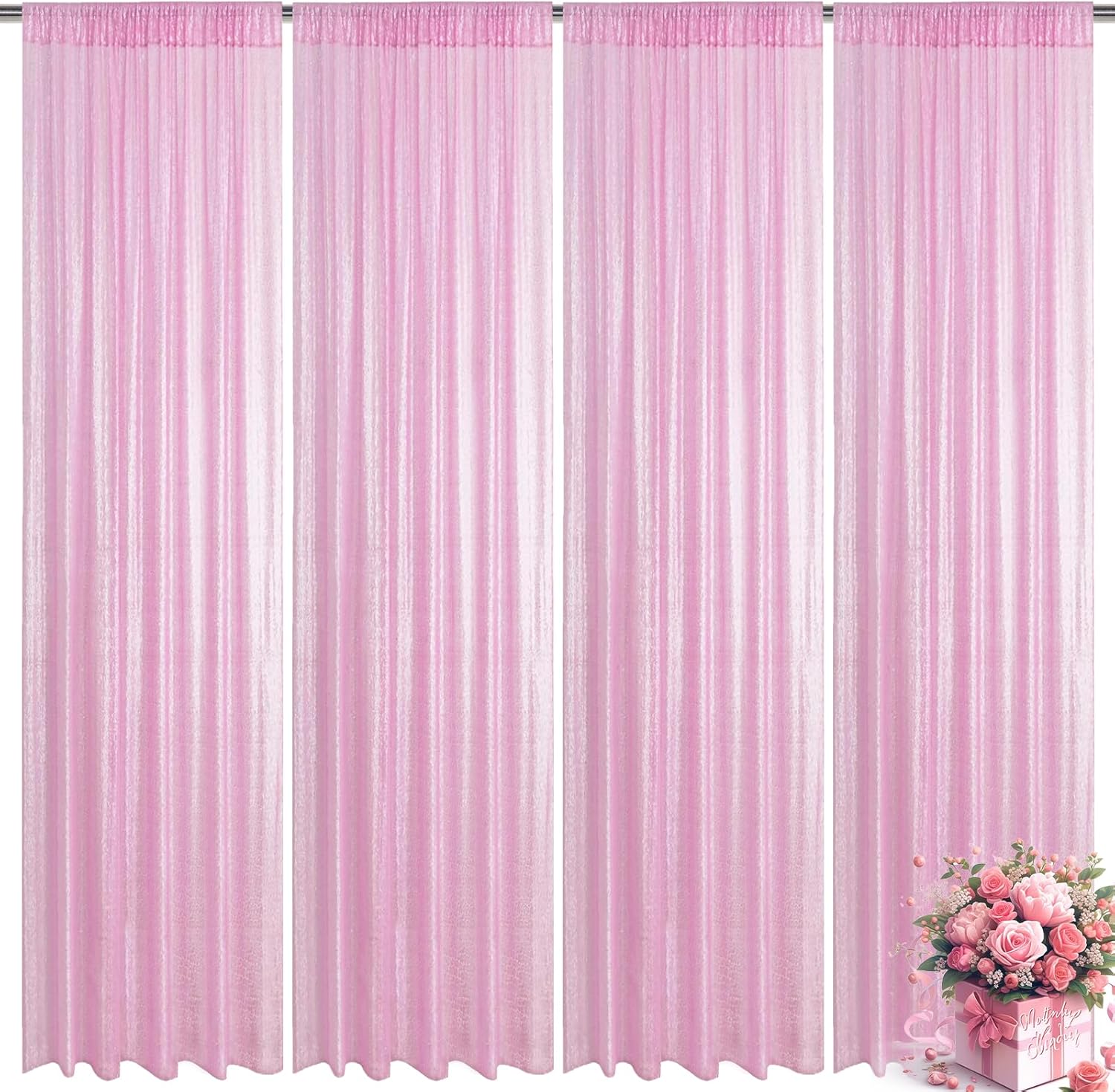 Matte Pink Sequin Backdrop Curtain 4 Pieces 2FTx8FT Glitter Photography Backdrop for Party Wedding Birthday Christmas Decorations