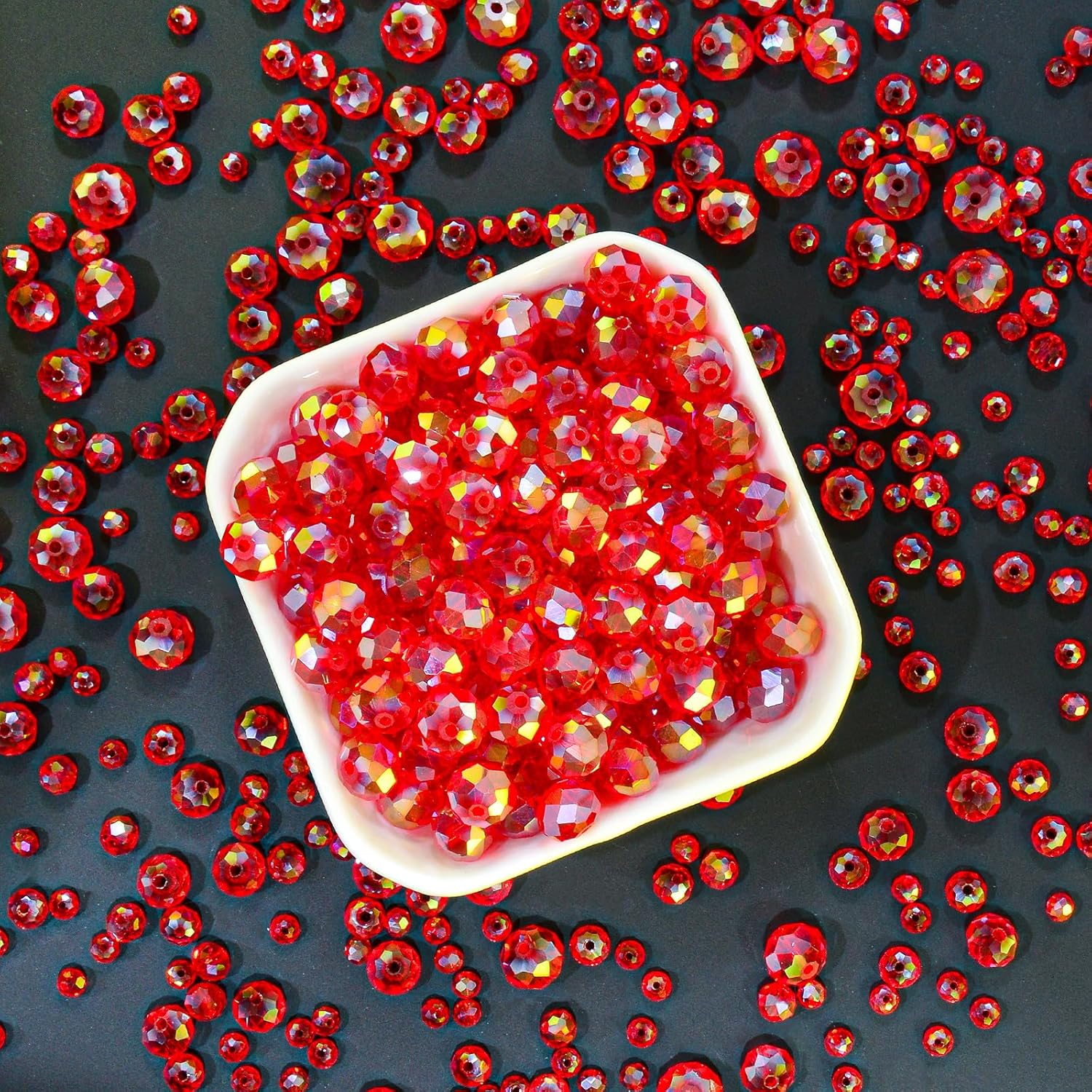 800Pcs 4/6/8/10mm Crystal Glass Beads for Jewelry Making Beads for Bracelets Necklace Pendants Making Supplies(Red)
