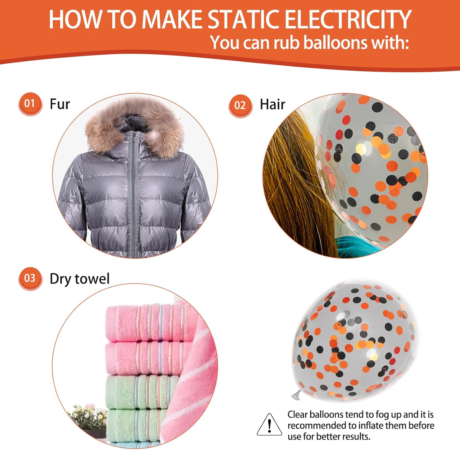 • 🎉【Complete 68-Piece Set】 – Includes 28 black balloons, 28 orange balloons, 12 confetti balloons, and 2 ribbons, offering a complete decorating solution for Halloween, graduation, birthdays, and themed parties.