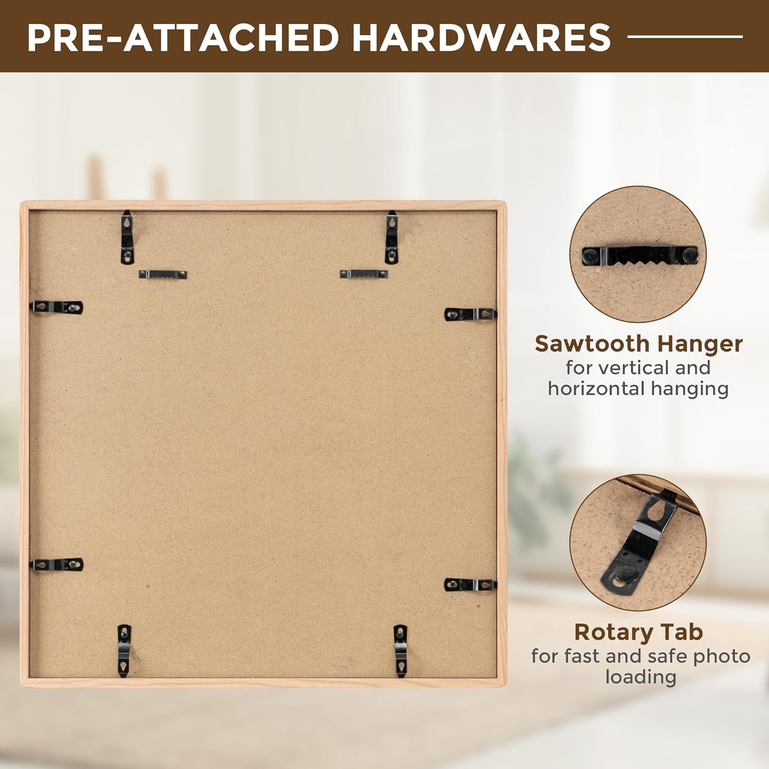 • Display As You Like: Designed for versatility, this photo frame comfortably accommodates an 16x16 photo with a mat or an 12x12 photo without a mat, offering flexibility to suit your unique display preferences. Whether you choose to showcase your photos horizontally or vertically, this wood picture frame adapts to fit your vision perfectly.