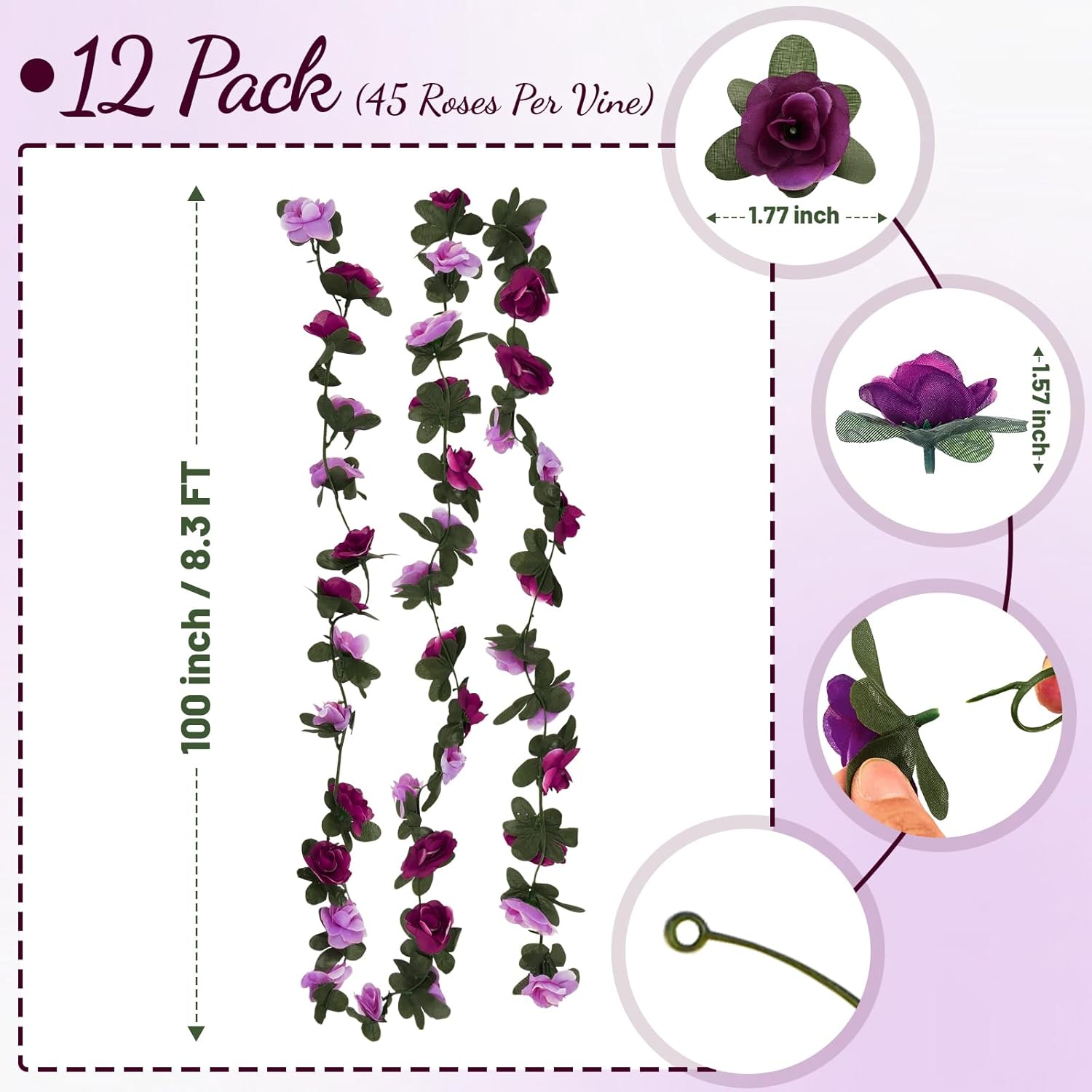 • Create a Romantic Atmosphere with Rose Garland: Enhance any space with our 2/8/12-pack rose garlands, each 8.2 feet long and featuring 45 lifelike roses per vine. Perfect for weddings, birthday parties, Christmas, bedrooms, or background walls, these rose garlands for decoration add an elegant touch to your special occasions.