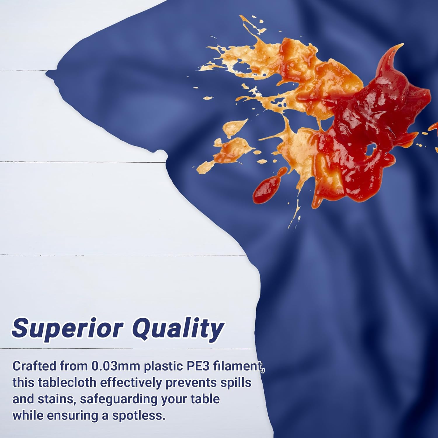 • High-End Materials: Crafted from 0.03mm PE3 plastic, this waterproof plastic tablecloth is disposable and can withstand both spills and protect the table, as well as falling glitter. Our plastic table cover materials are sturdy enough to withstand lively baby shower decorations or outdoor picnics, while the oil-resistant surface ensures quick wipe-downs or hassle-free disposal post-event.