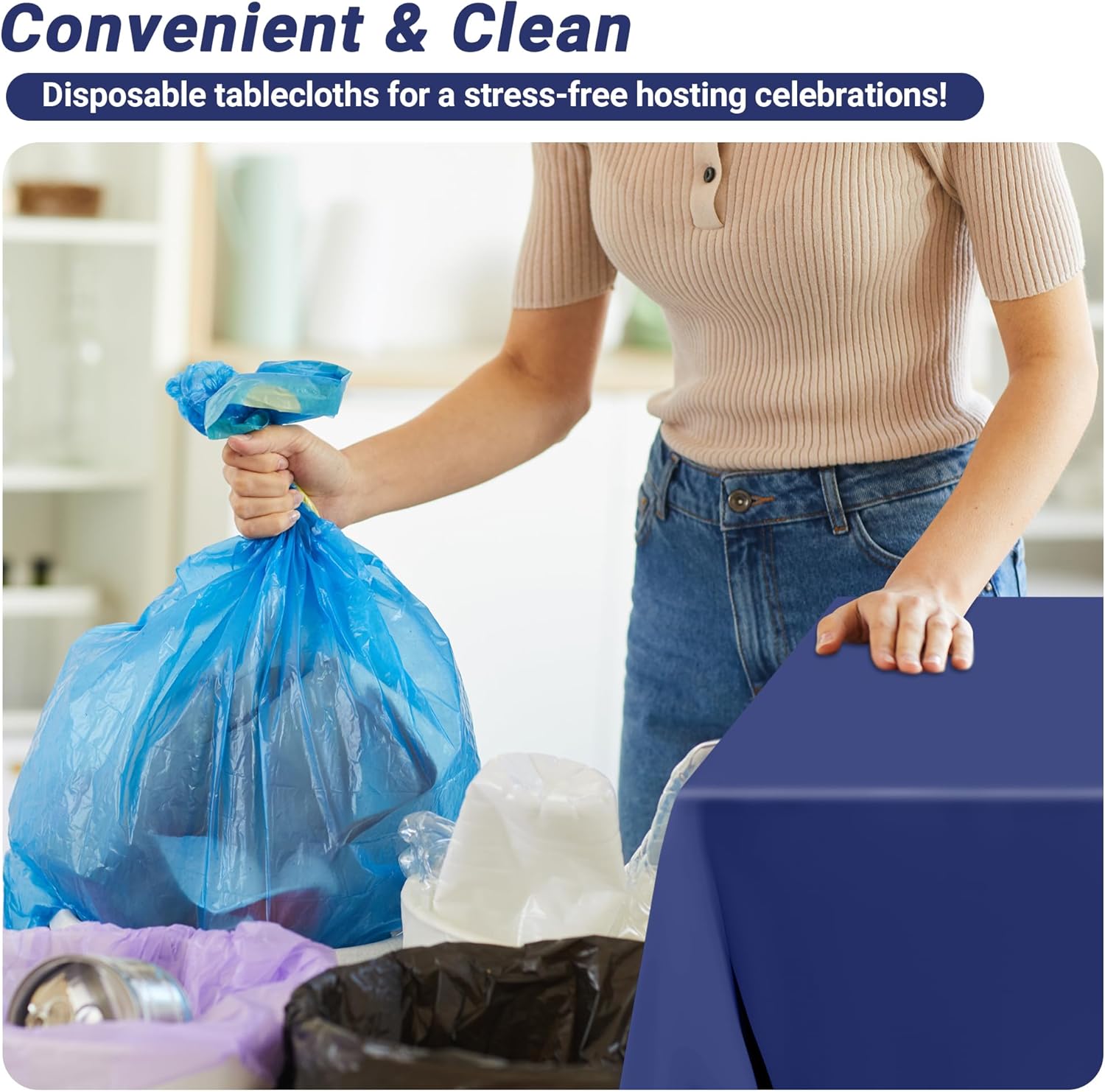 • Versatile Use: This elegant navy tablecloth effortlessly adapts to any occasion—from basketball party decorations and festive outdoor gatherings to nature-themed celebrations. Crafted for both style and practicality, our plastic tablecloths blend sophisticated charm with unmatched versatility. Whether used as birthday party table decorations or repurposed for creative displays, they elevate every event with timeless appeal.