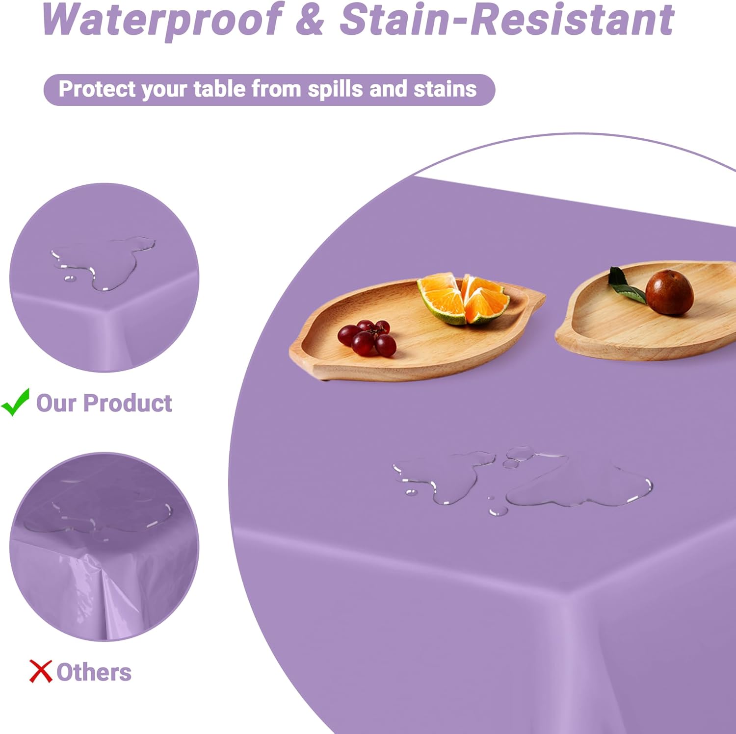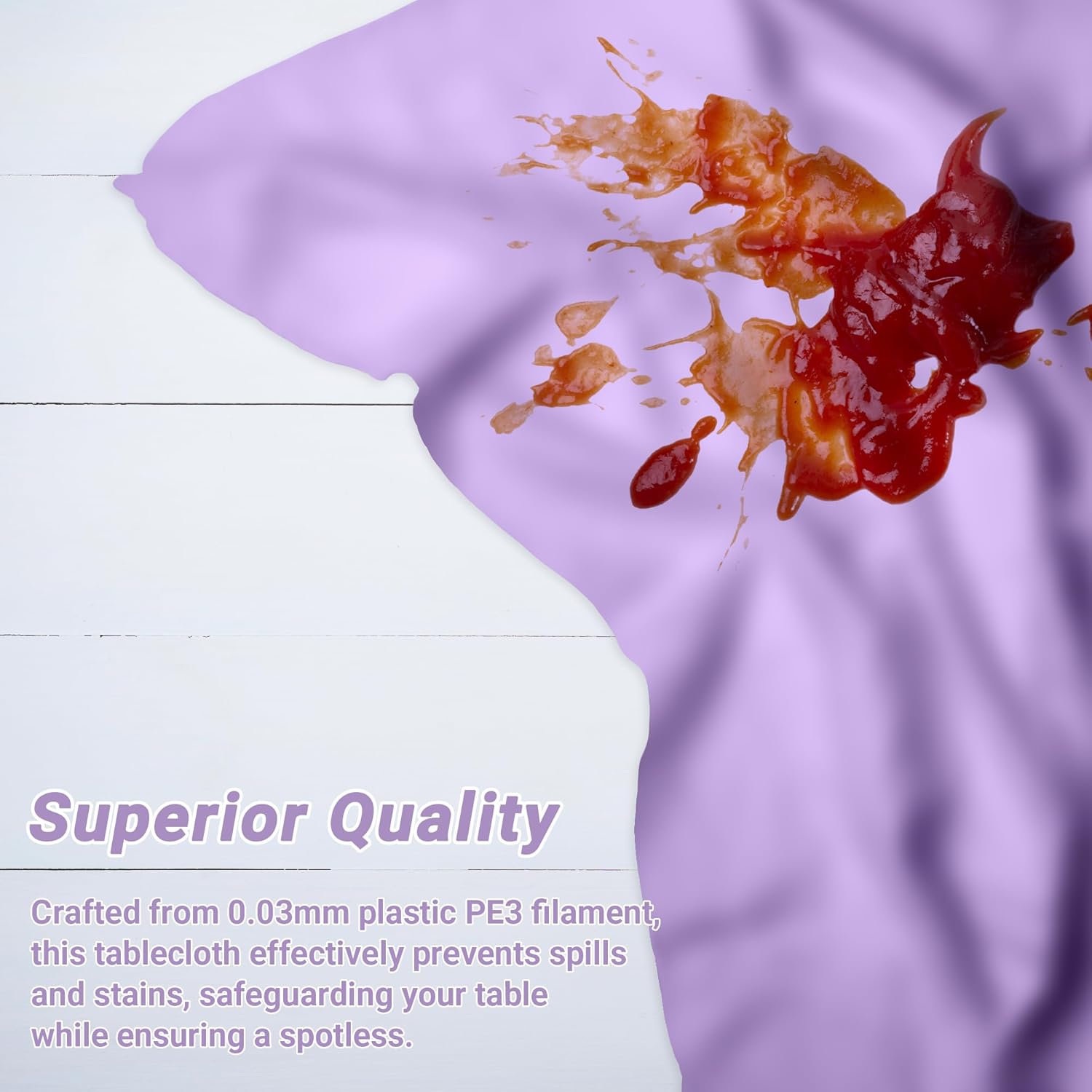 • High-End Materials: Crafted from 0.03mm premium PE3 plastic, this lavender tablecloth is designed to protect against spills, stains, and grease, making it perfect for vibrant events. The oil-resistant surface repels messes, while the excellent material of our table cloth ensures stability during adjustments, guaranteeing flawless coverage for events such as outdoor gatherings, and wedding decorations for tables.