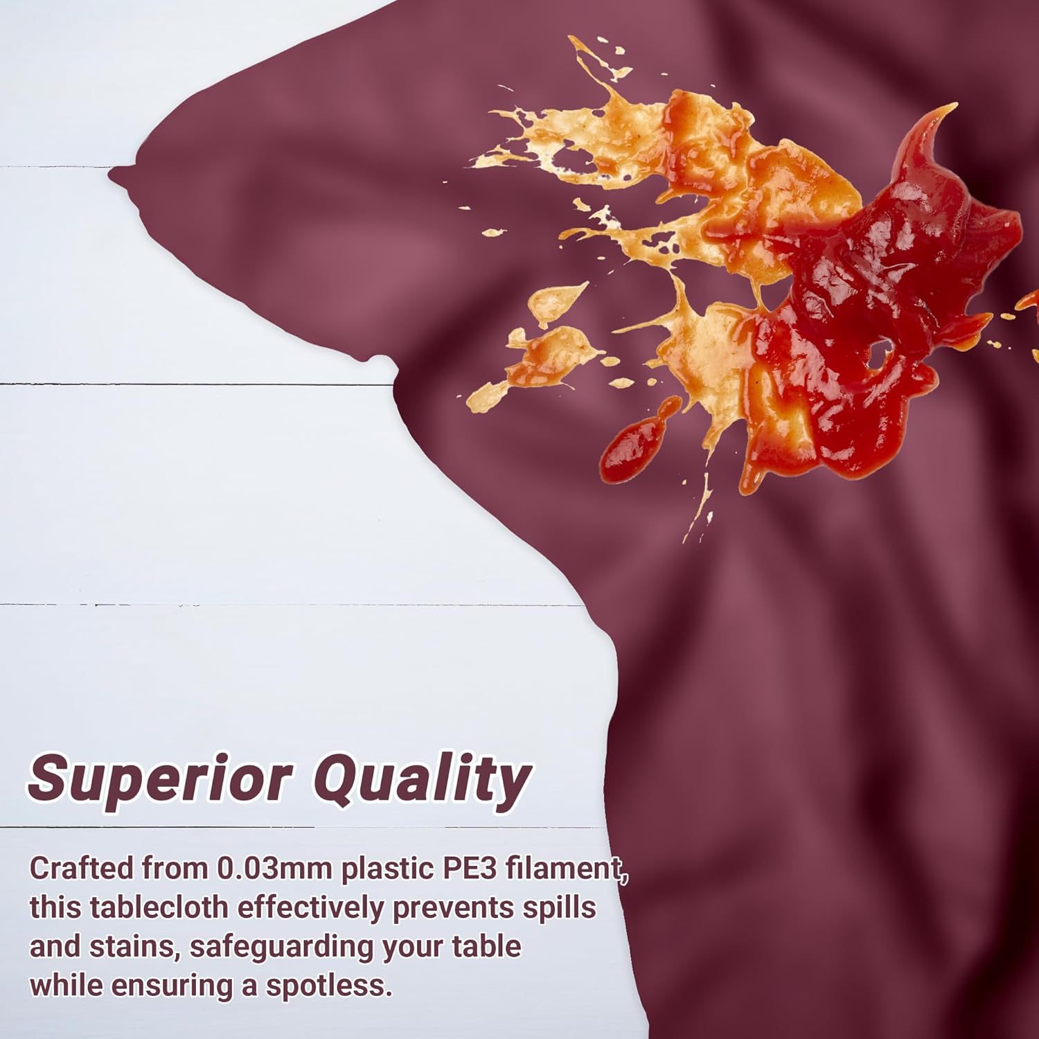• Multi-Purpose Use: Transform every occasion with our wine-red plastic table cover, crafted to effortlessly transition from rustic BBQ party decorations to elegant anniversary table setups. This square tablecloth adapts to diverse needs—cover it over picnic tables for casual outdoor gatherings, proving one table cloth truly conquers all seasons and celebrations.