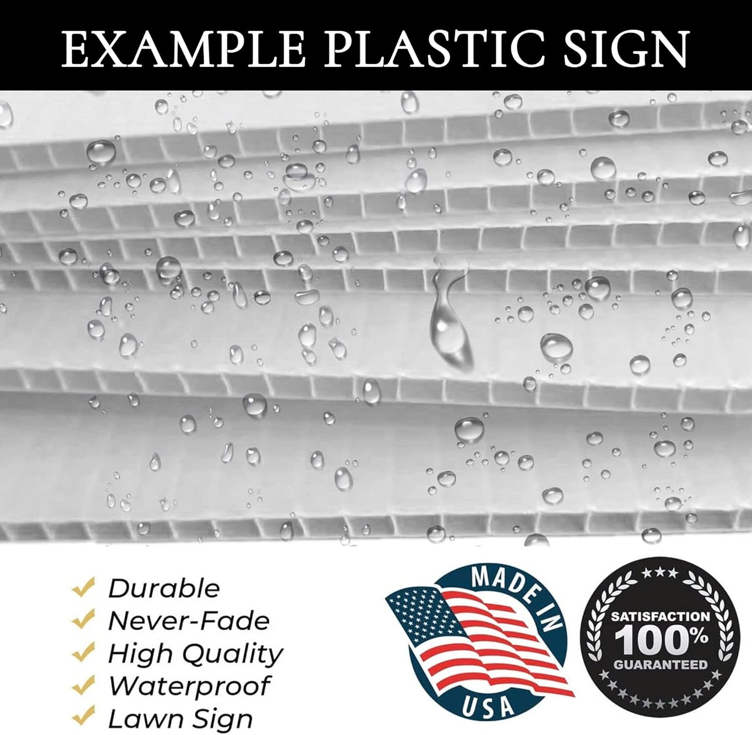 • Durable Construction: Made of fade-resistant 4mm thick corrugated plastic, ensuring your sign can withstand the elements and last for years to come