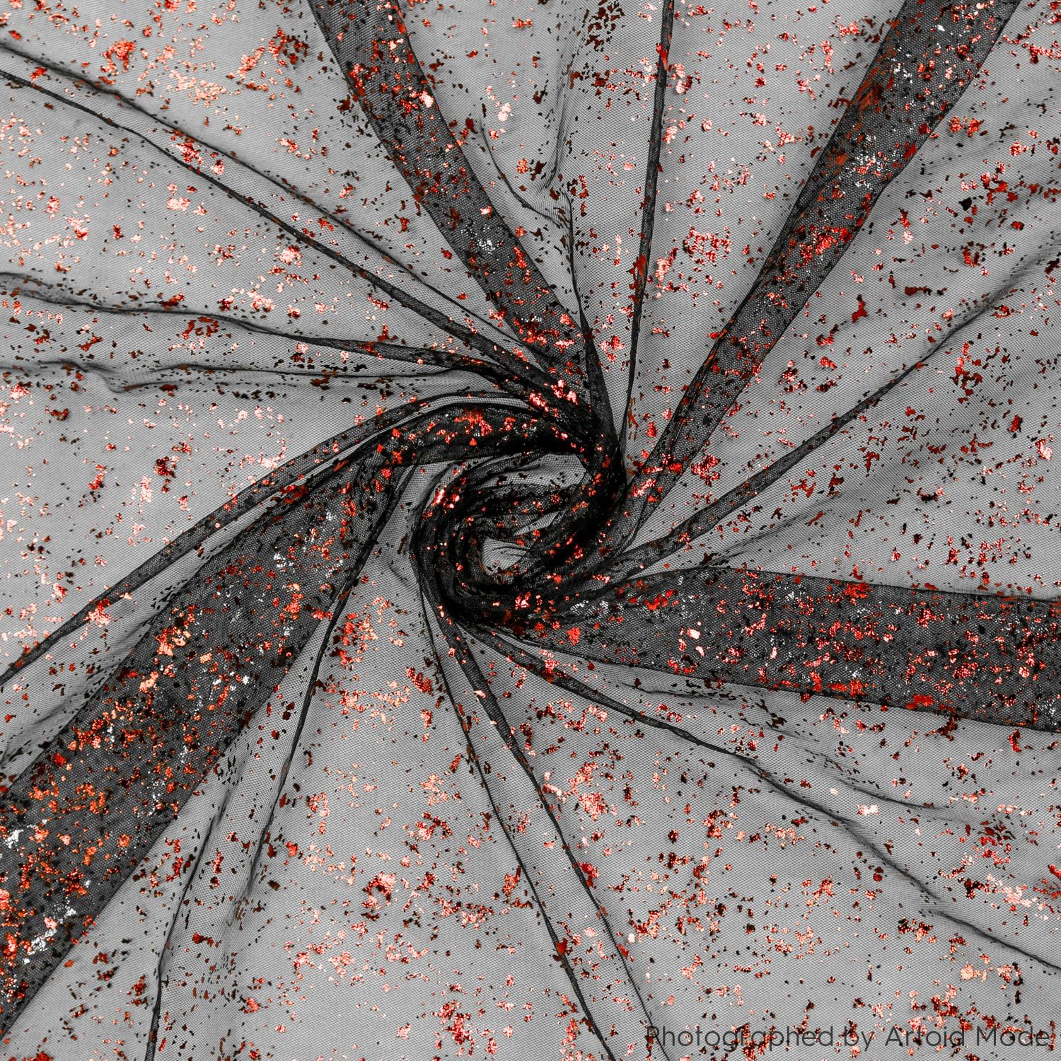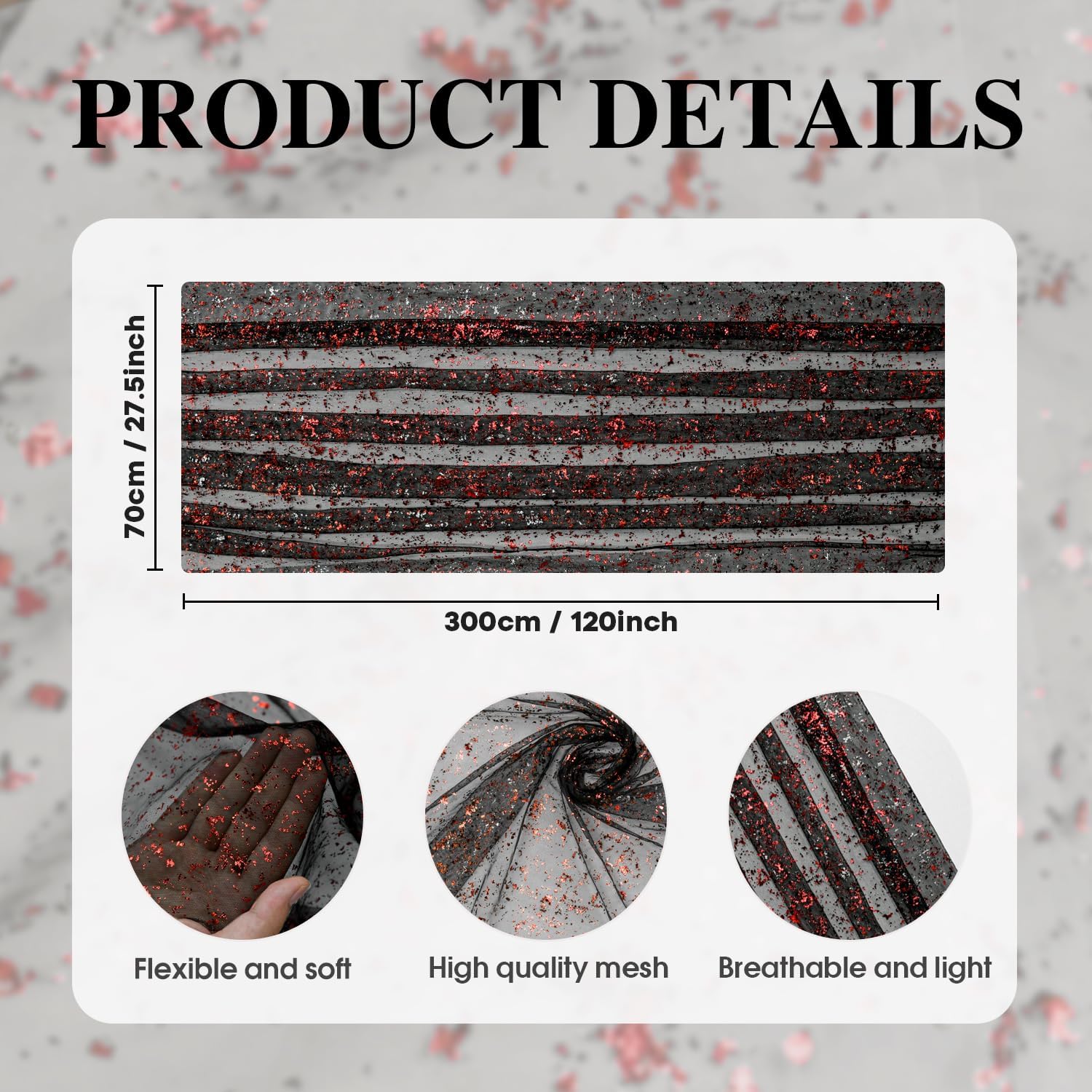 Artoid Mode 6PCS Black Red Gold Gauze Table Runner 120 Inch 10FT, Glitter Metallic Foil Sheer Dining Wedding Anniversary Holiday Table Decor for Home Party