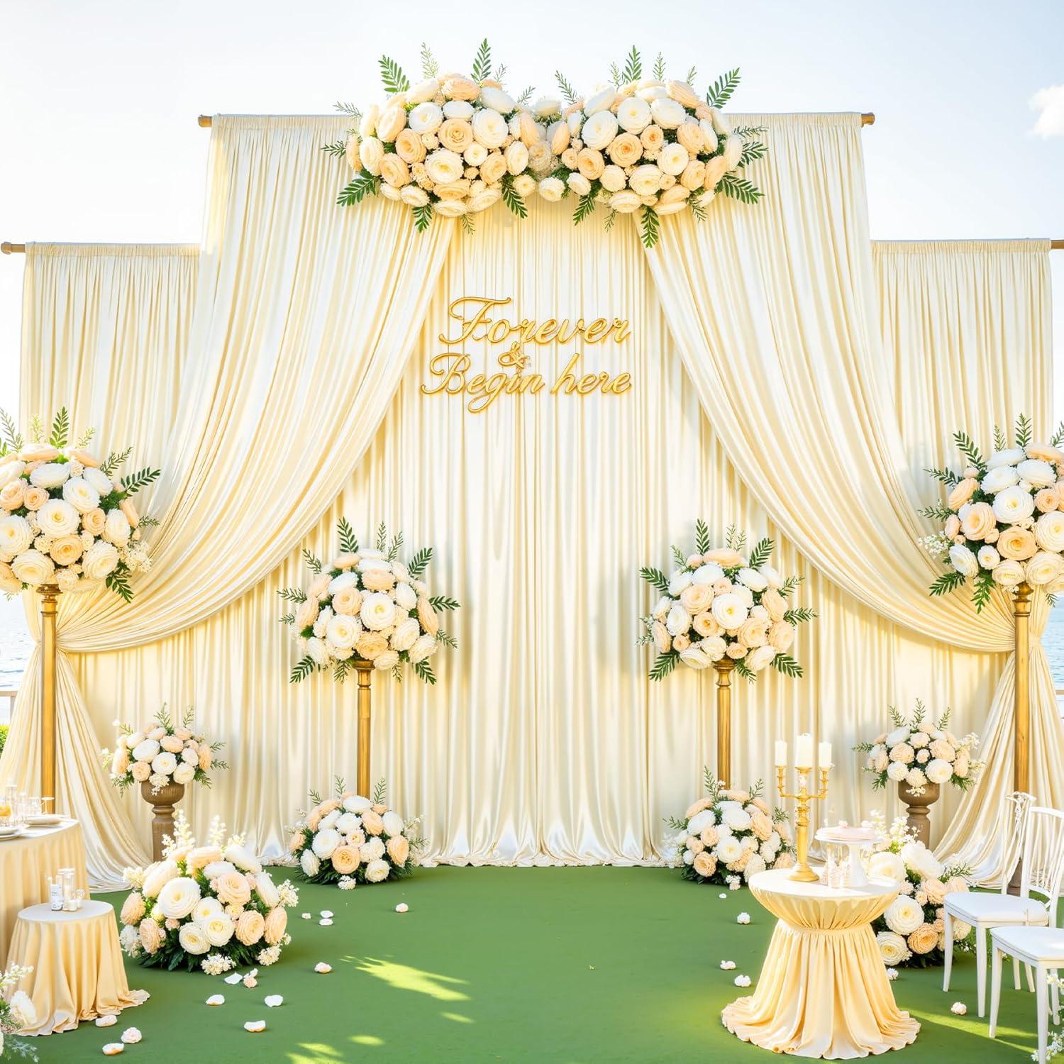 • Champagne Shimmer Backdrop Curtain Easy Care & Reusable:We recommend you could clean the champagne backdrop with hands.Or you could put the satin backdrop drapes in a laundry bag and then use the washing machine to wash it.We recommend cleaning and storing it after used, you can use it again when needed next time.