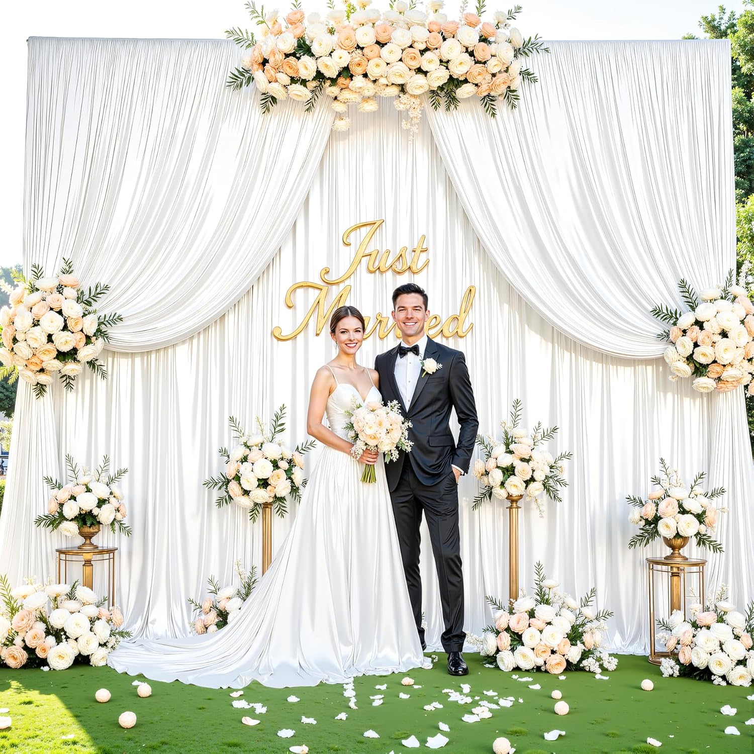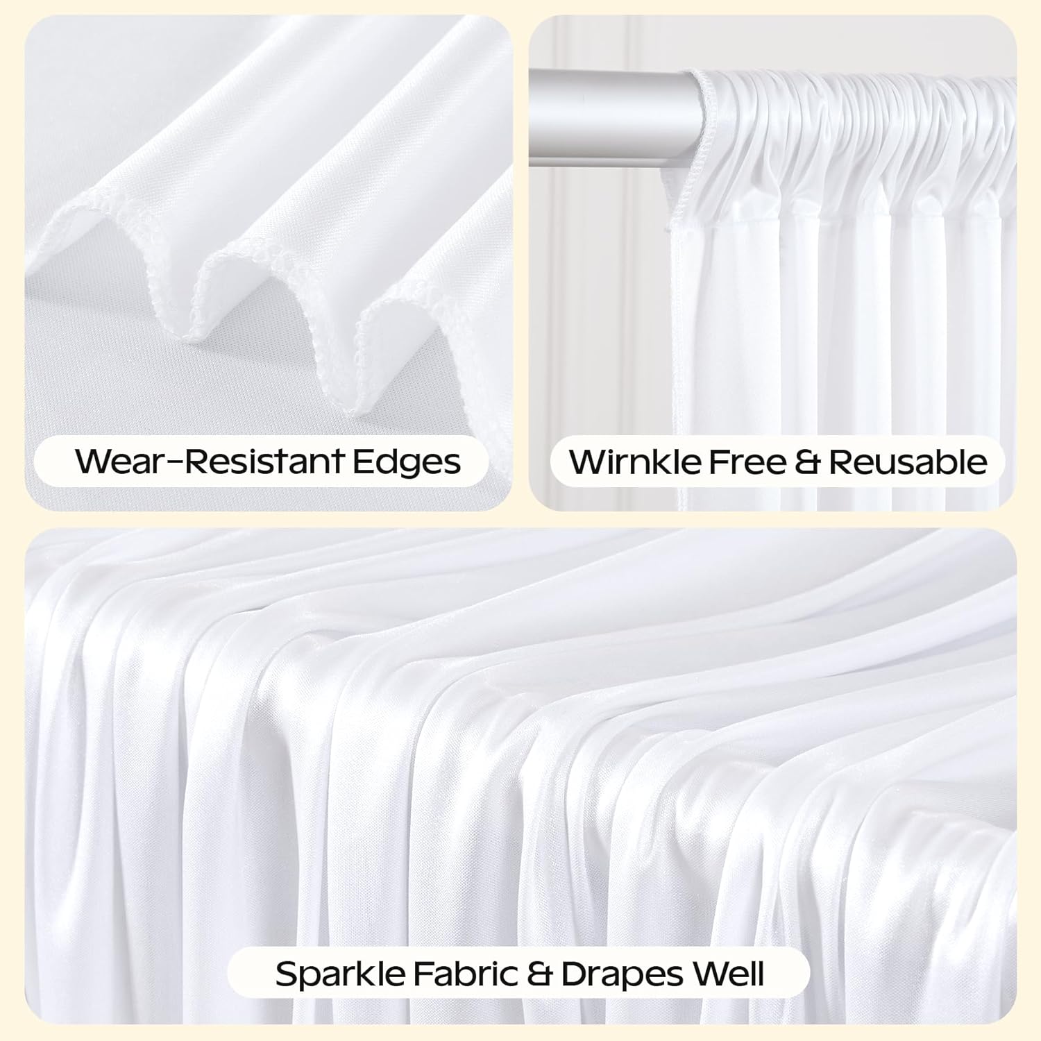 • White Shimmer Backdrop Package Included & Easy to install:The package included 2 Panels 5x10ft backdrop curtain,which can be arranged side by side to create a 10x10ft backdrop or used separately.Install way: Insert a rod or hang it on walls, ceilings, or temporary frames.