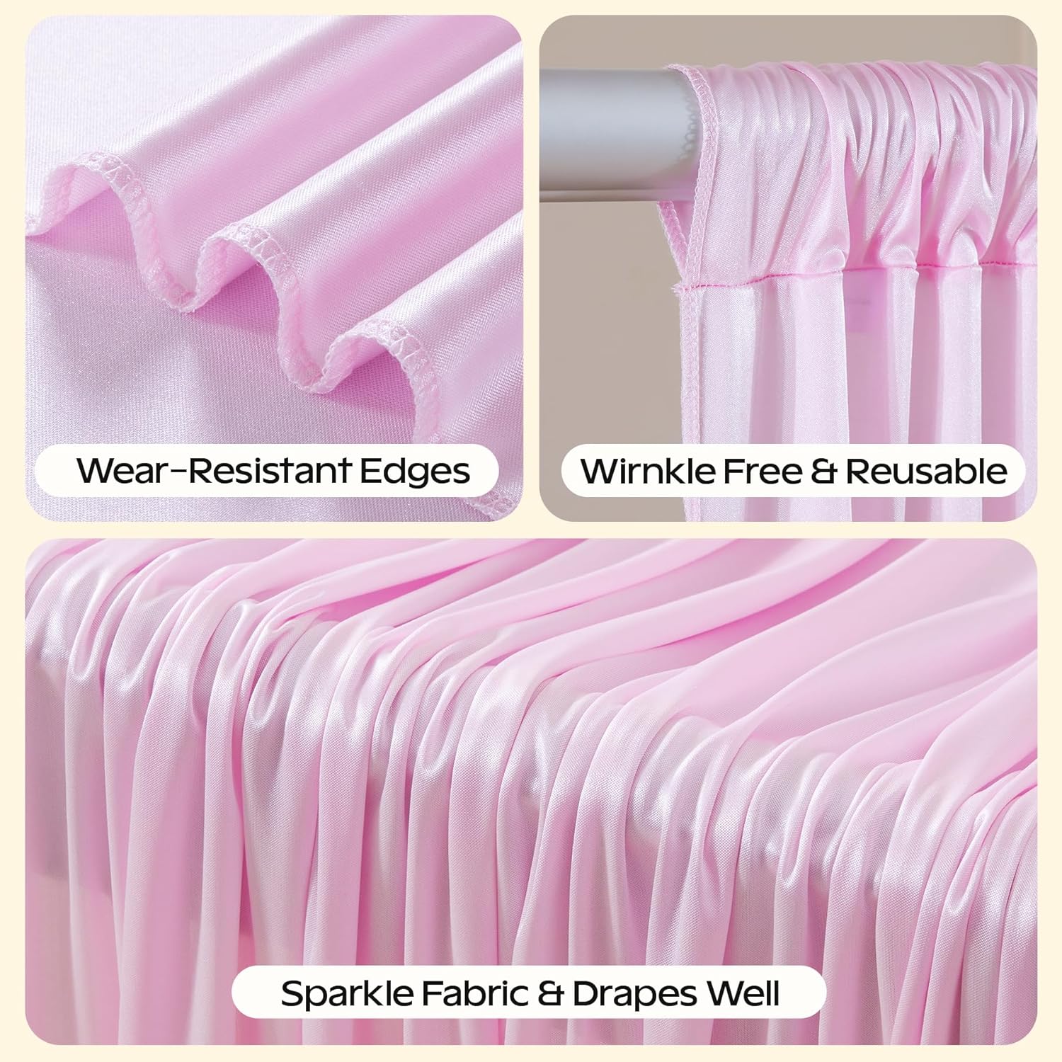 • Pink Shimmer Backdrop Curtain Package Included & Easy to Install:The package included 2 Panels 5x10ft backdrop curtain,which can be arranged side by side to create a 10x10ft backdrop or used separately.Install way: Insert a rod or hang it on walls, ceilings, or temporary frames.
