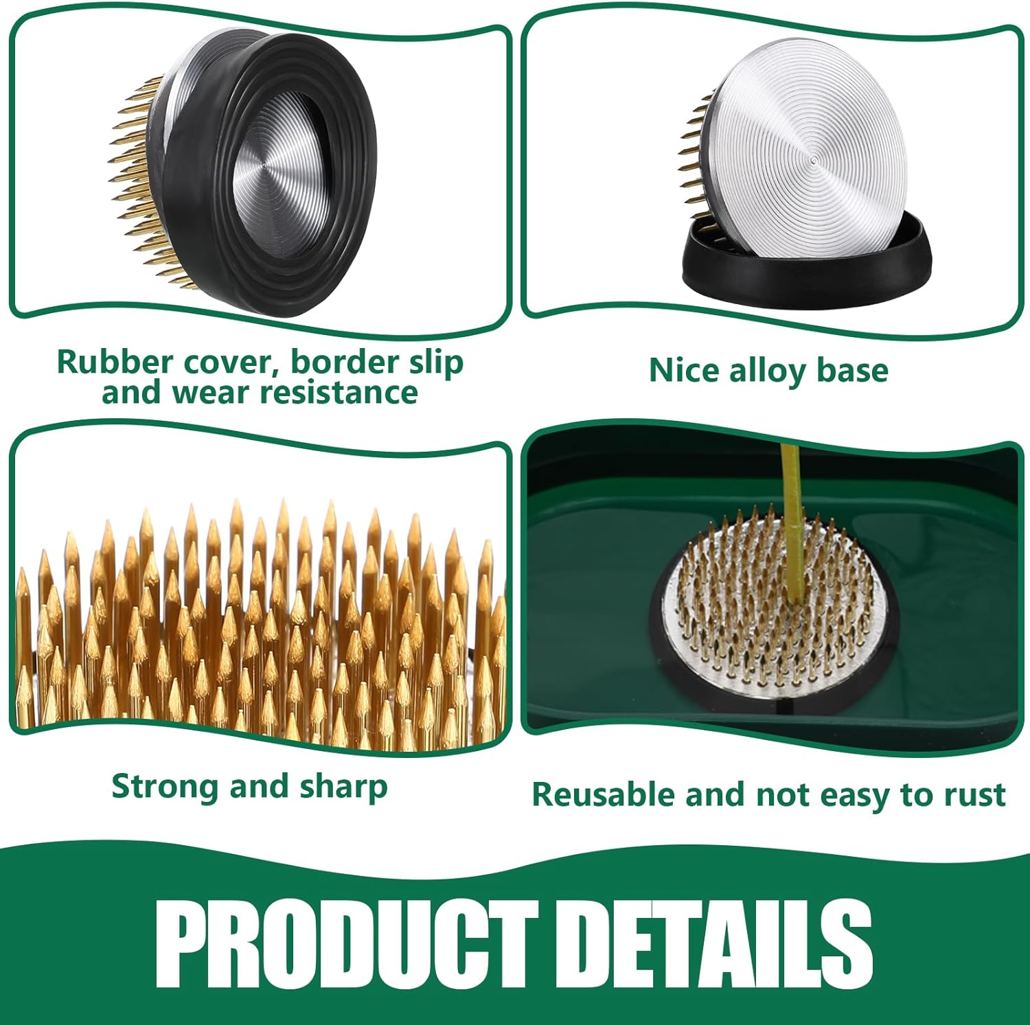 • Needle Design: stand out in your arrangements with our stable floral arrangement holder featuring 91 brass needles each with a height of around 0.43 inches; This array of strategically heightened needles allows for you to fix your flowers effortlessly while ensuring that they maintain their desired positions