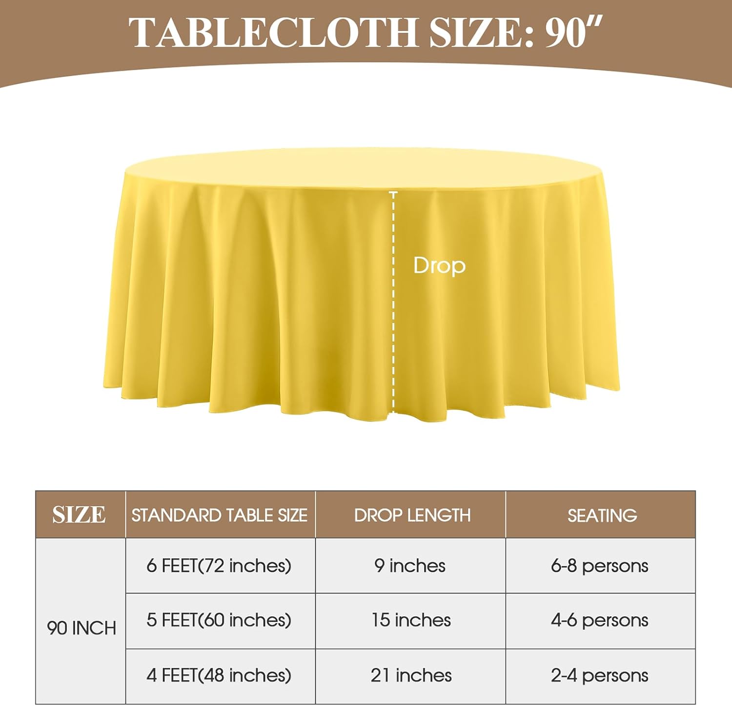 Round Tablecloth 6 Pack 90 Inch Yellow Tablecloths Washable Decorative Linen Polyester Table Clothes Cover for Dining Table Banquets Buffet Parties and Wedding