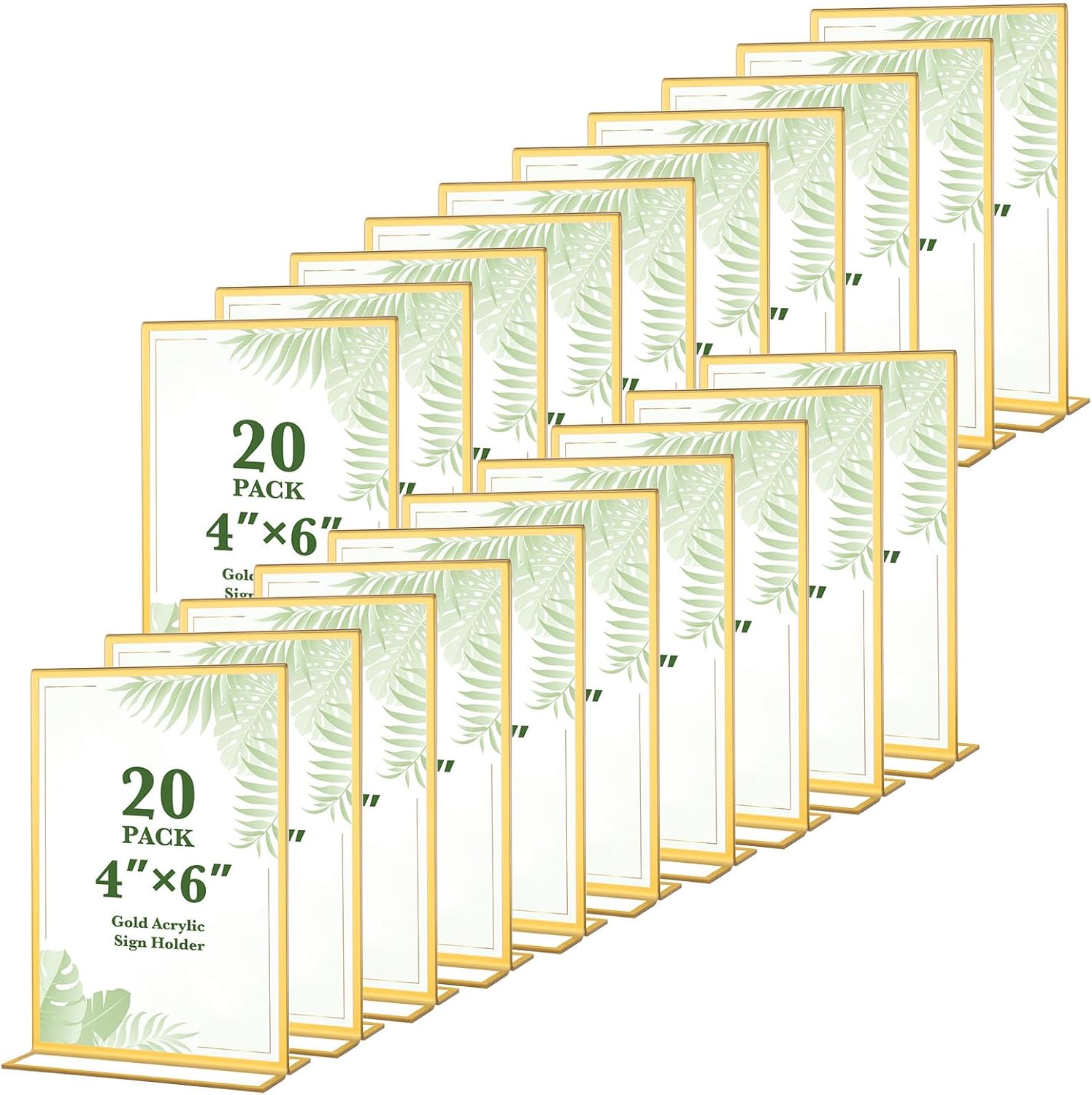20 Pack Gold Acrylic Sign Holders 4x6 Inch, Double Sided Vertical Stand Clear Picture Frames, Table Menu Display Holders for Wedding Table Numbers, Restaurant Signs, Party and Office Photos