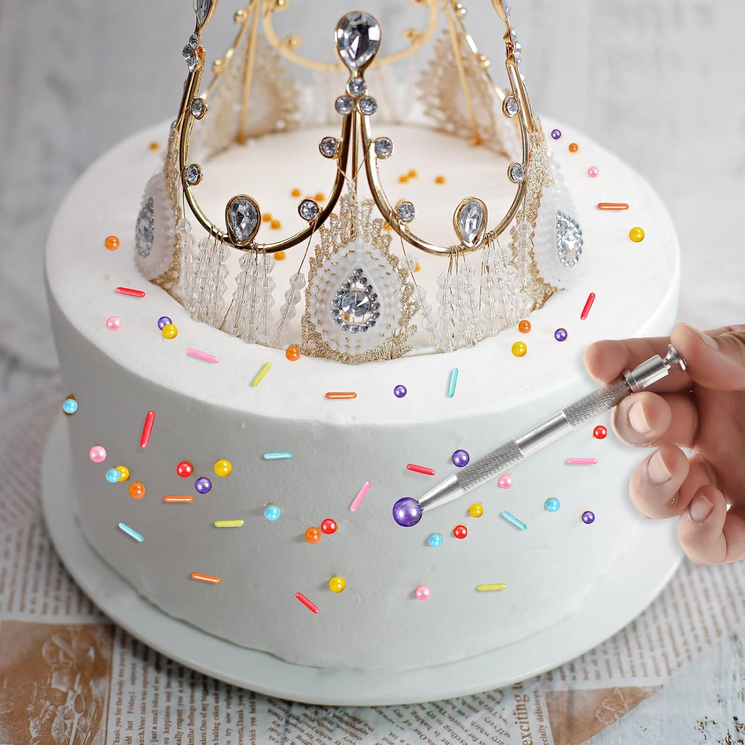 • 【Excellent Material】: Rainbow sprinkles for cake decorating are made of food-grade safe ingredients, you can eat them with confidence. It can be eaten by men, women, old and young. The 4-claw pick up tool is made of stainless steel material, durable and retractable, it allows you to clamp and place pearl sugar smoothly.