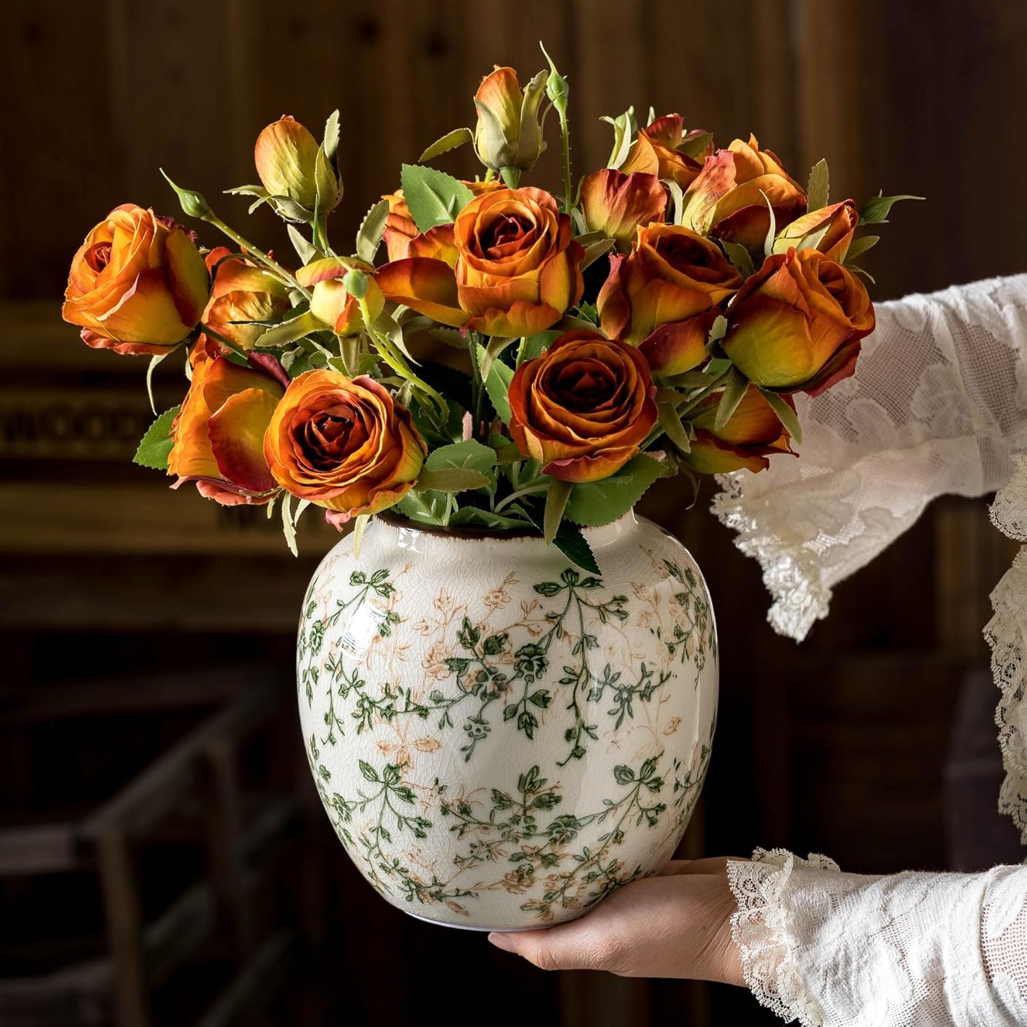 • Premium Ceramic Craftsmanship: Made from high-quality ceramic, this floral vase combines durability and elegance. The fine craftsmanship and smooth finish ensure it stands out in your ceramic vases for home decor collection, offering a classic and refined look.