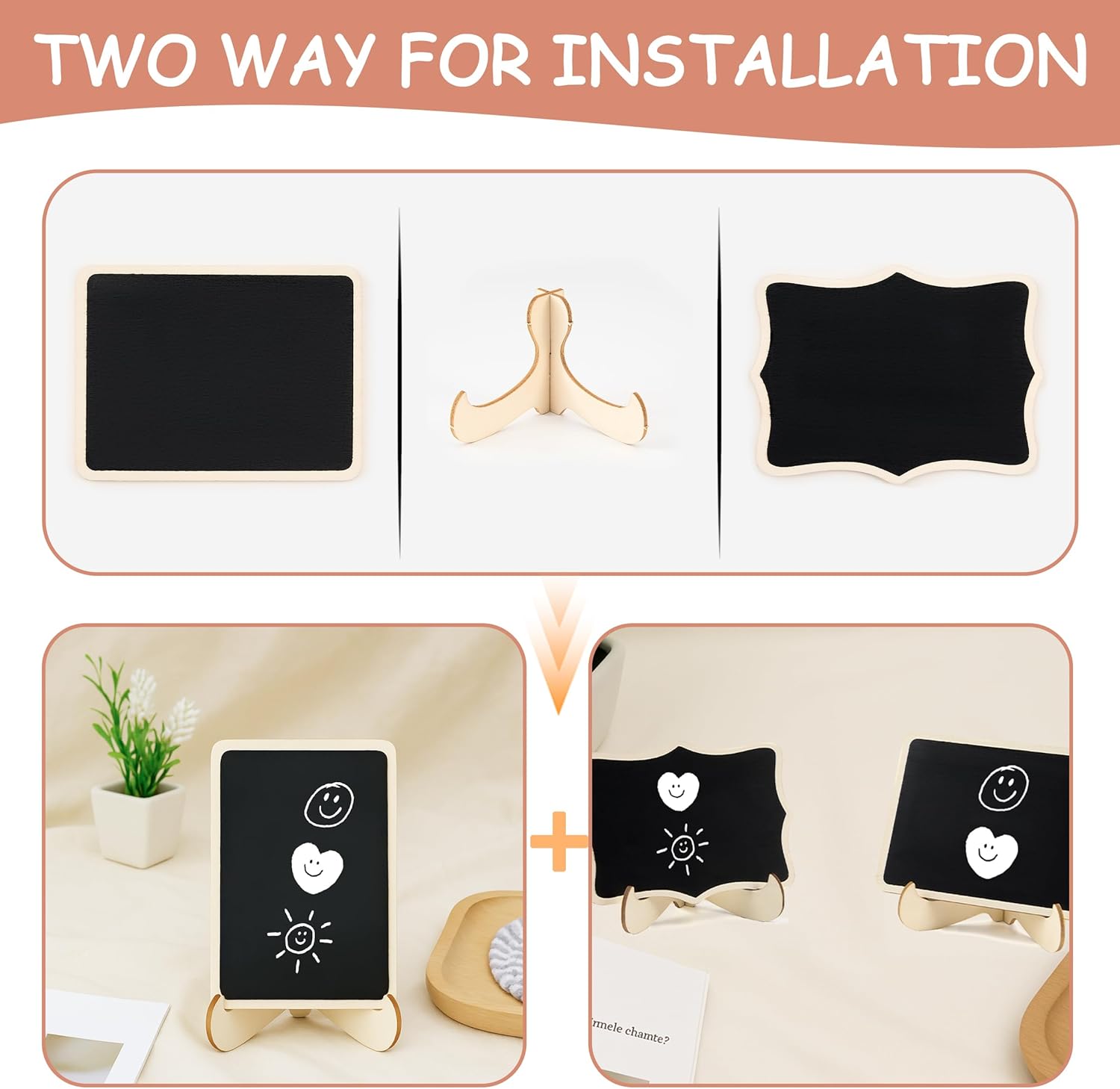 • Easy to Carry: Each chalkboard sign comes with a removable stand, allowing it to sit securely on a table. The foldable design makes these chalkboard signs tabletop-friendly and easy to store or transport, offering great convenience.