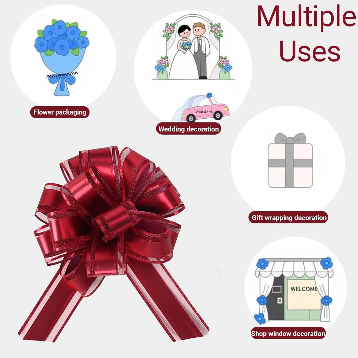 • PULL BOWS PACKAGE CONTENTS: Set of 10 elegant burgundy red pull bows, each measuring 4 inches in diameter when fully assembled - perfect for gift wrapping and decorations