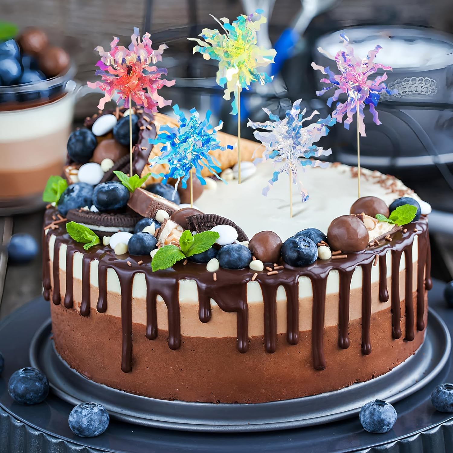 • Sparkling Firework Design: Each topper features a brilliant firework-style tinsel design that shimmers in the light, instantly enhancing your cake’s appearance and festive vibes.