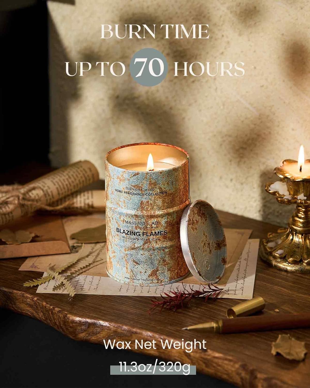 M&SENSE Blazing Flames Scented Candles Natural Non Toxic, Aromatherapy Candle for Stress Relief Meditation Relaxing, Housewarming Gifts for Women Men, 11.3oz 70 Hour Long Burning