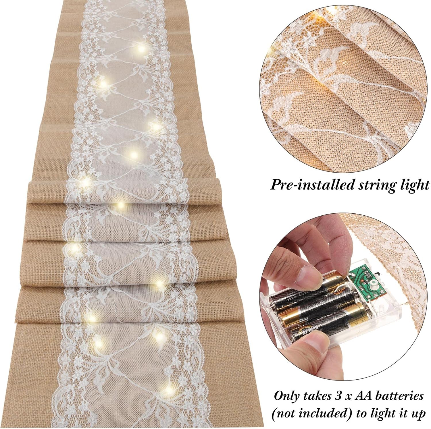 • What You Can Receive: this package includes 12 burlap table runners and 12 strings of LED string lights, with 40 bright and rich LED lights, you'll have everything you need to create a beautiful and cozy atmosphere