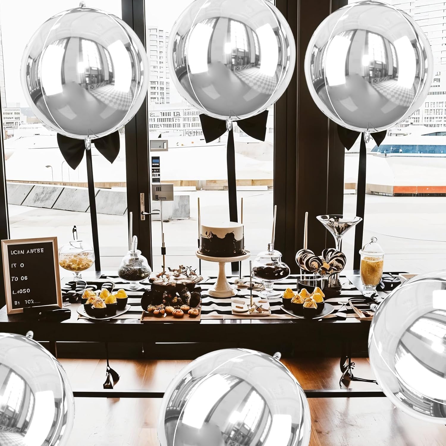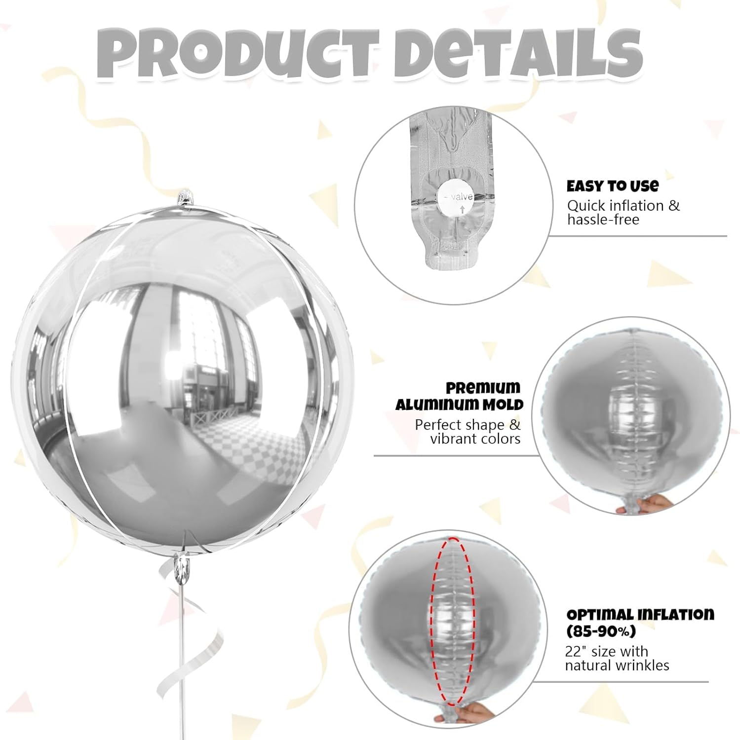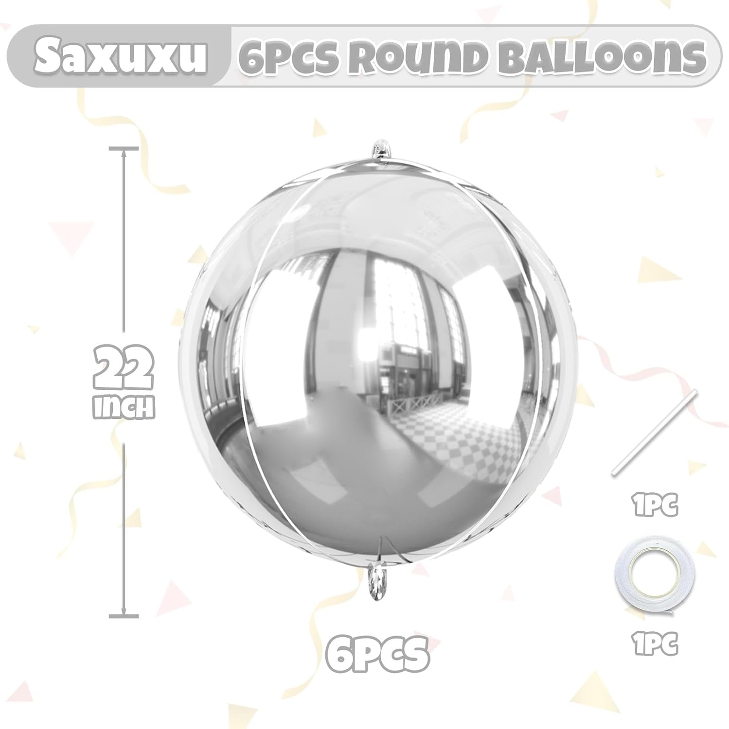 • 【PACKAGR CONTAIN】 This package includes 6 pcs 22-inch silver round 4D foil balloons, 1 pc straw and 1 pc ribbon. These large, eye-catching balloons are perfect for elevating your party decor with a bold and stylish touch