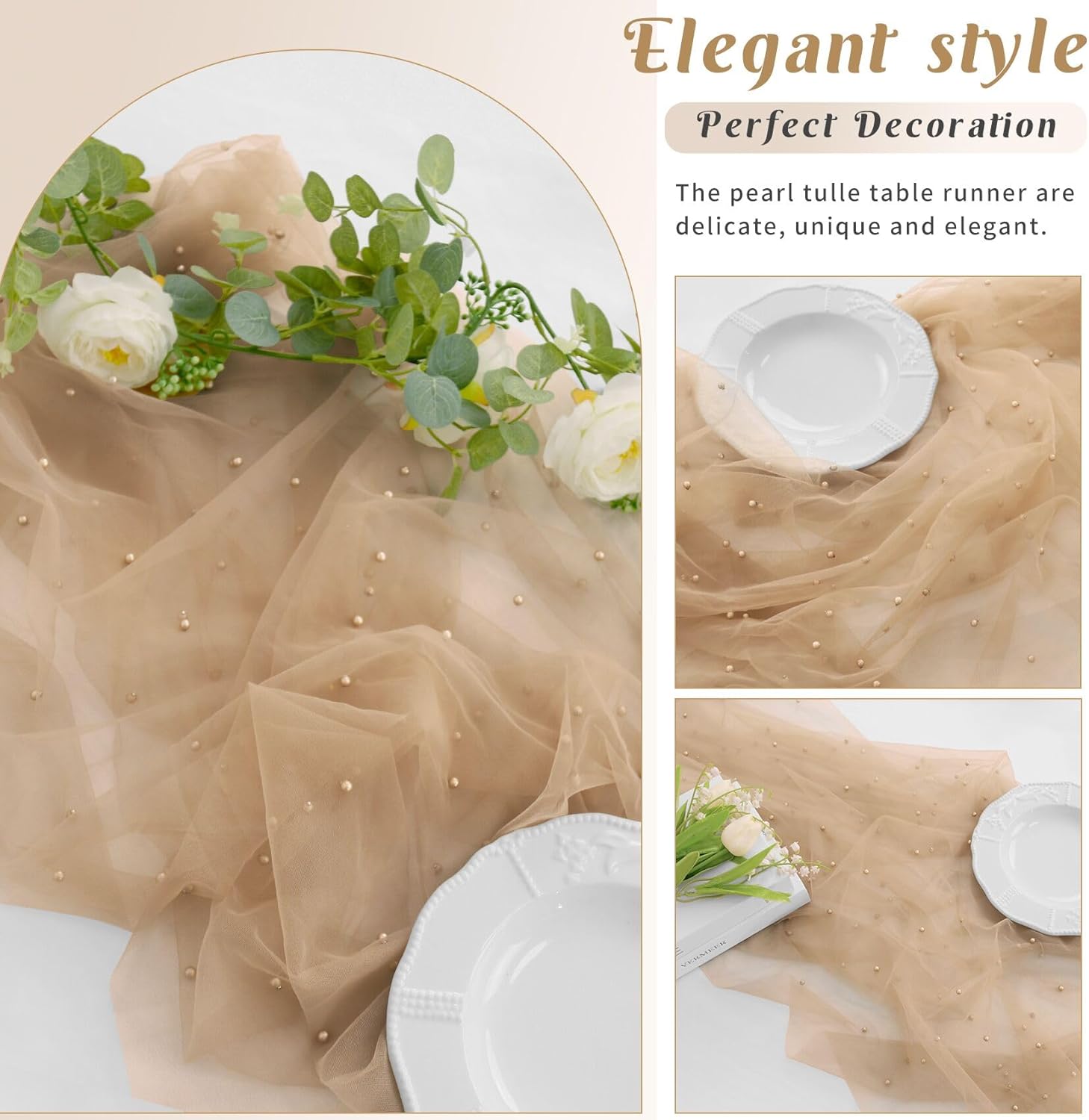 • 【Exquisite Workmanship】 These romantic table runners are made of premium tulle. Soft feeling, sheer, reusable, easy to clean and fade resistant. Delicate pearls embellished table runner works perfectly for many types of event decor, which will add a ton of elegance to any space.