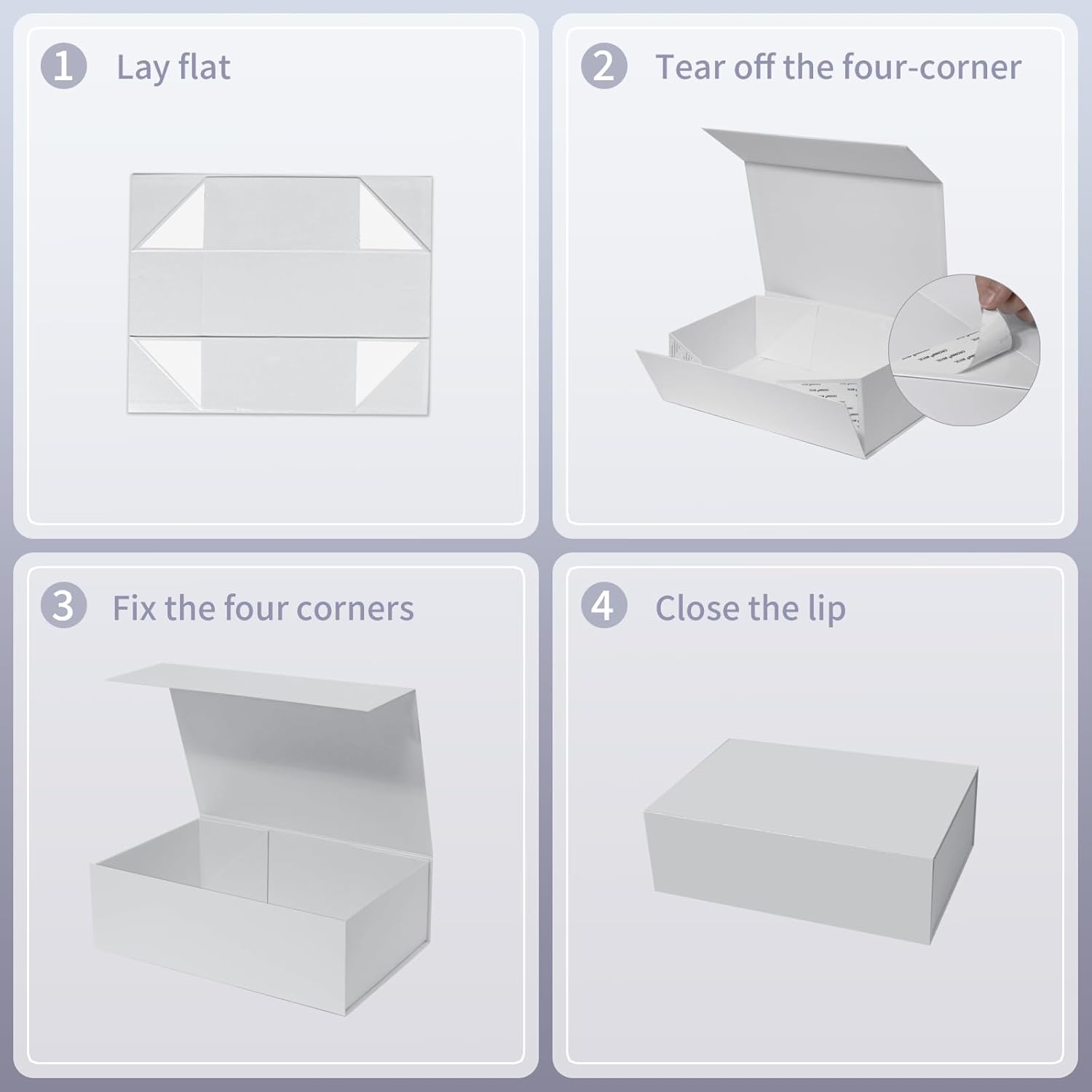 • EASY TO ASSEMBLE: For easy transportation,the gift box is designed to be folded. Unpack the package,tear off the white triangle sticker,paste and assemble the box.