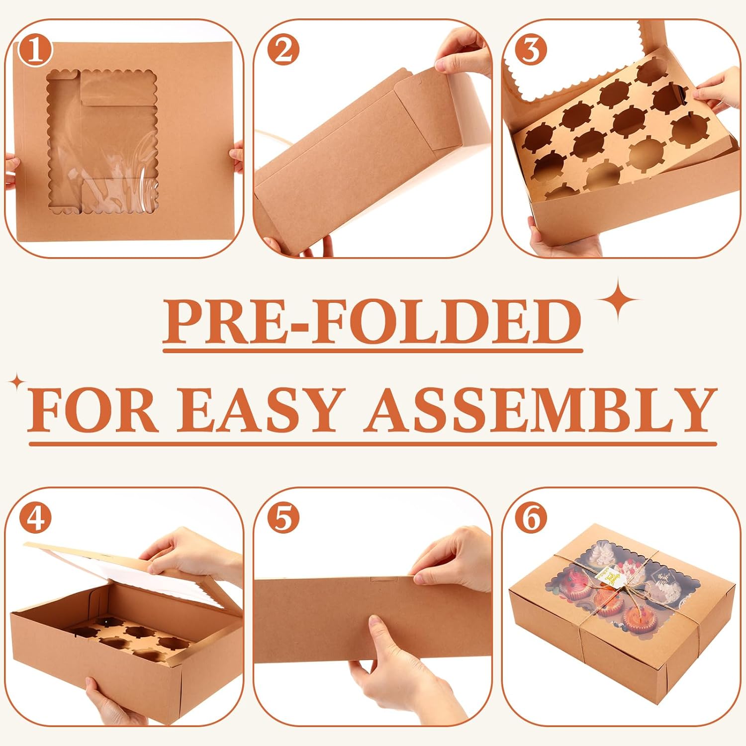 36 Pack Cupcake Boxes Hold 12 Standard Disposable Cupcake Containers with Window and Insert Cupcake Carrier with Thanks Card and Jute Rope to Muffins Cupcakes Cookies Gift Wrapping (Nature)