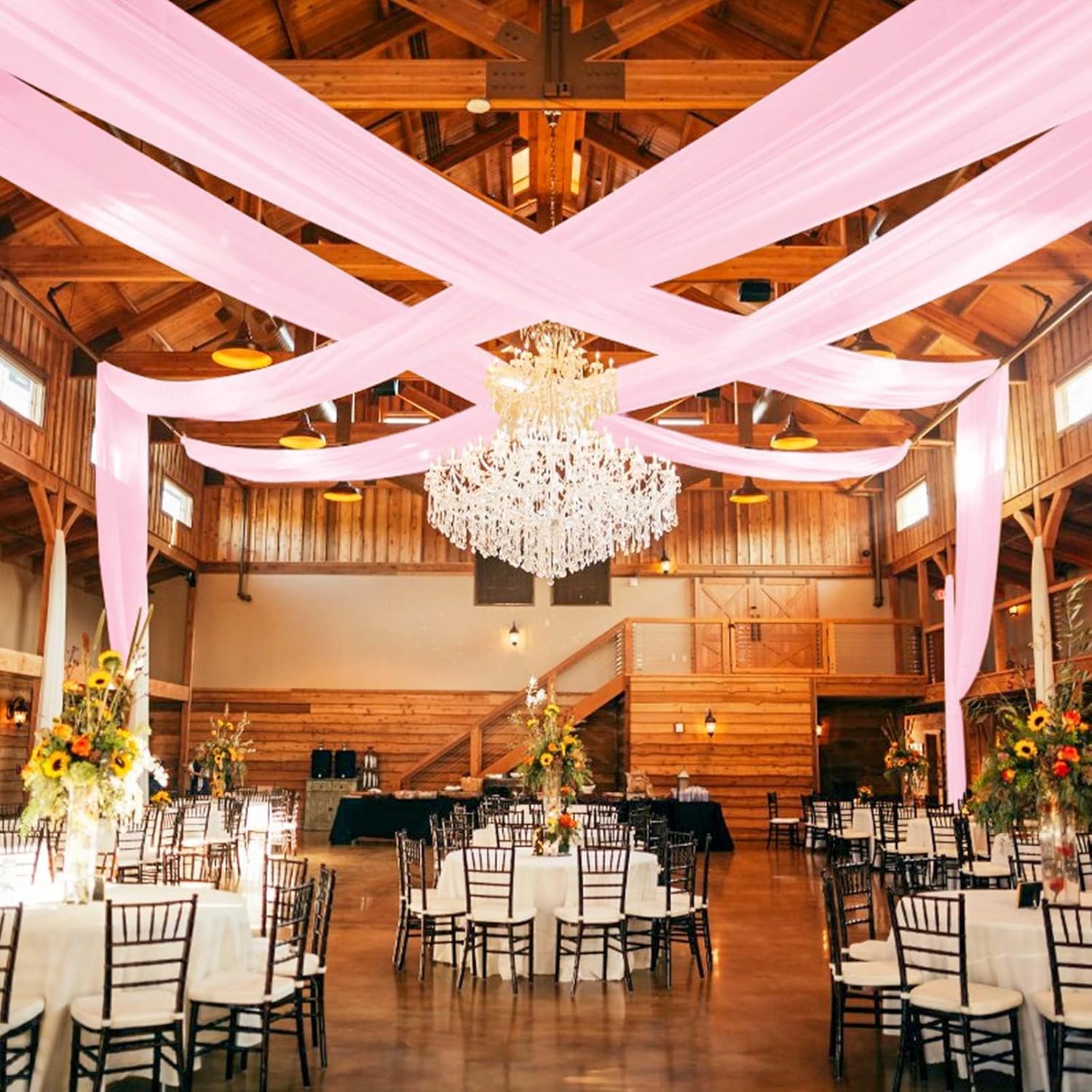 6 Panels Pink Ceiling Drapes for Wedding 5ftx40ft Ceiling Drapes Wedding Arch Draping Fabric Cheesecloth Sheer Curtain Romantic Ceiling Decorations for Weddings Party Banquet Ceremony Stage