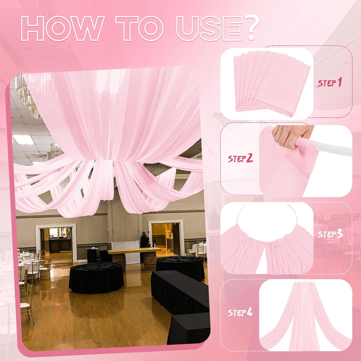 6 Panels Pink Ceiling Drapes for Wedding 5ftx20ft Ceiling Drapes Wedding Arch Draping Fabric Cheesecloth Sheer Curtain Romantic Ceiling Decorations for Weddings Party Banquet Ceremony Stage