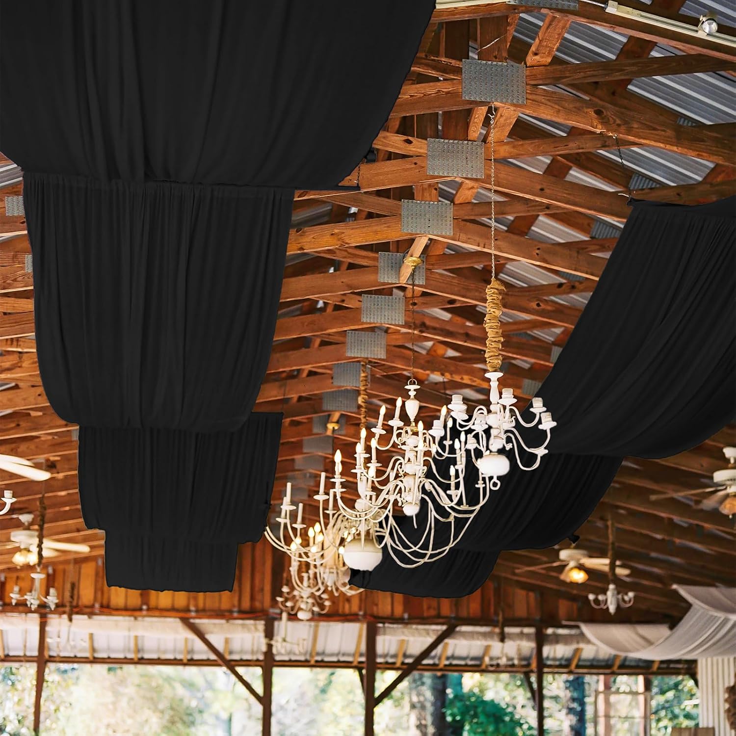 6 Panels Black Ceiling Drapes for Wedding, 5ftx15ft Ceiling Drapes Cheesecloth Sheer Fabric Curtain Wedding Arch Draping Fabric Romantic Ceilings Decorations for Weddings Party Ceremony Stage