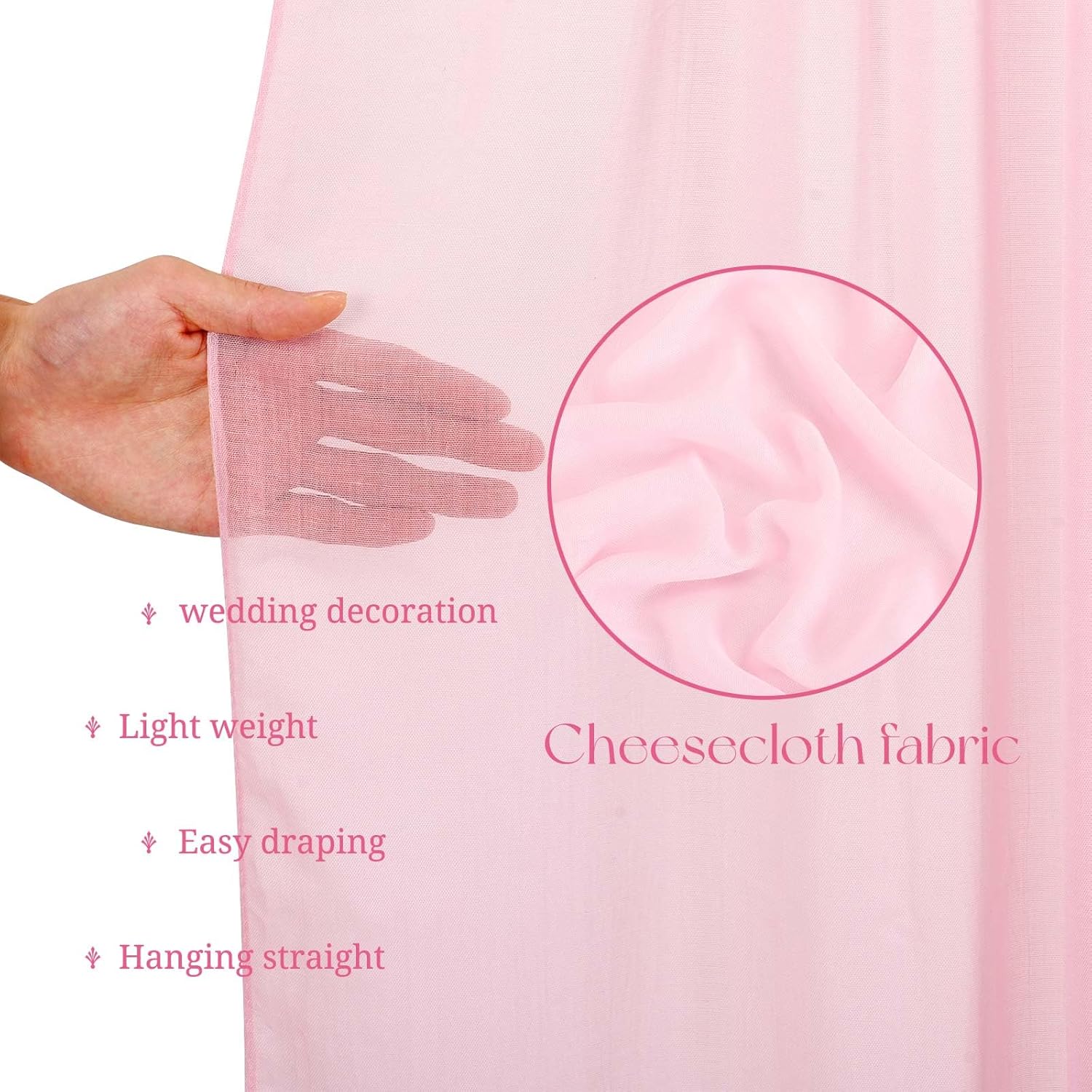 • 【Rod Pocked Design】There is a 4 inches pocket for rod or pole entry at the top and bottom of each panel creating beautiful draping. Sheer arch draping fabric are good choice to decorate your wedding and party. Different hanging methods will bring you various visual effects.