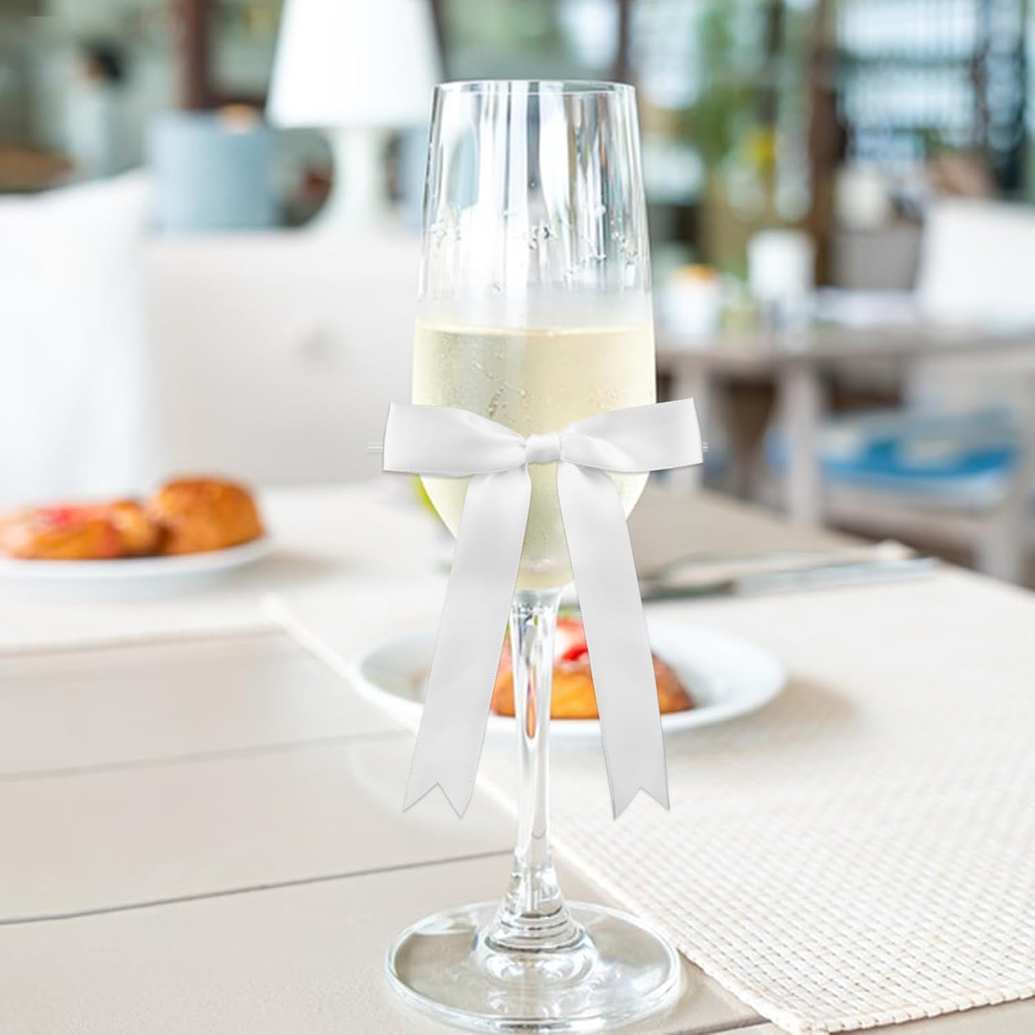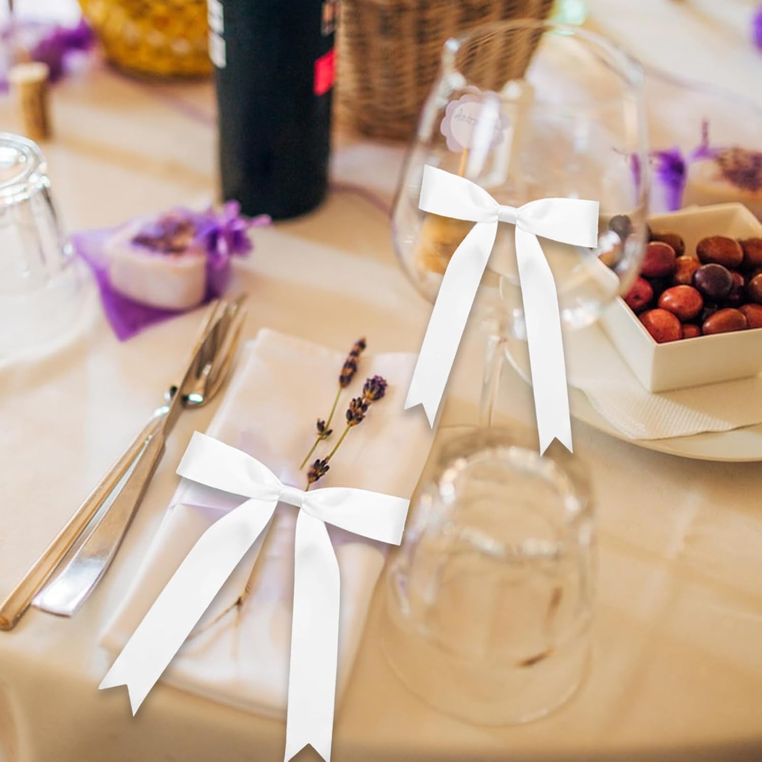 30Pcs Satin Ribbon White Bows 5x7 Inch Twist Tie Bow for Gift Wrapping Champagne Bottle Cake Treat Bag Craft DIY Gift Christmas Birthday Party Balloons & Garland Home Decor