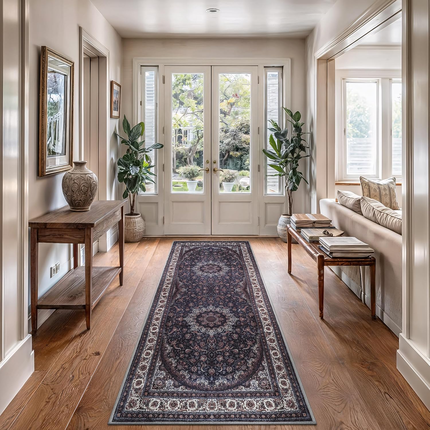Bloom Rugs Washable Non-Slip 10 ft Runner - Navy Traditional Medallion Runner for Entryway, Hallway, Bathroom, and Kitchen - Exact Size: 2.5' x 10'