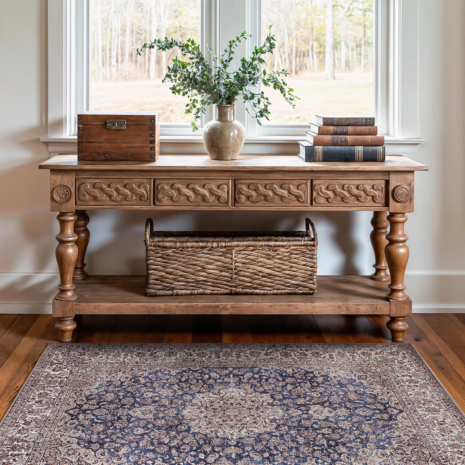 Bloom Rugs Washable Non-Slip 3' x 5' Rug - Dark Blue/Beige Traditional Medallion Area Rug for Living Room, Bedroom, Dining Room, and Kitchen - Exact Size: 3' x 5'
