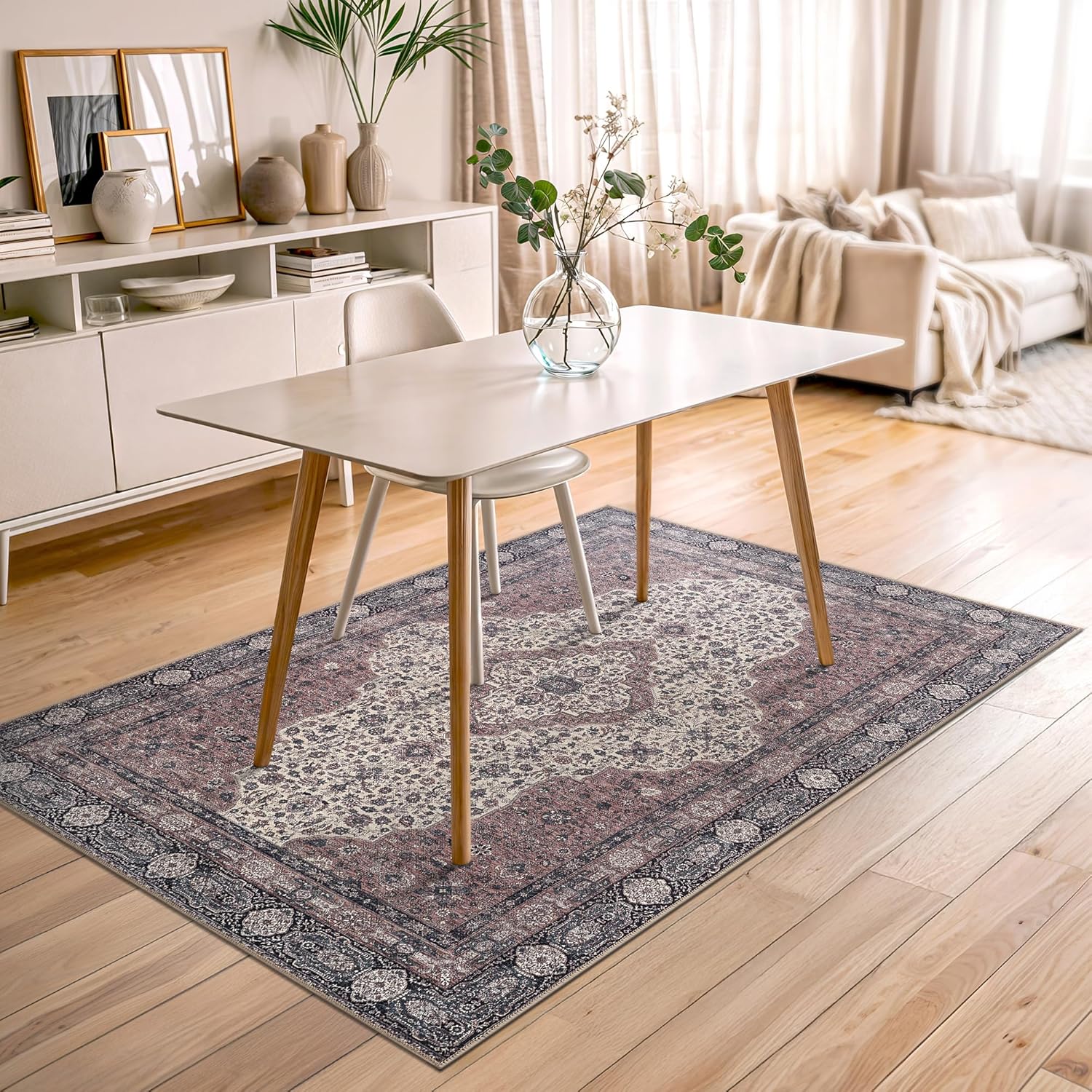 • EASY TO SETUP AND NON-SLIP: This one-piece machine washable rug with non-slip backing attached eliminates any additional setup. Simply unfold and lay flat upon arrival in the desired space. Non-slip backing prevents the rug from moving or sliding without the need for additional rug pad or grippers.