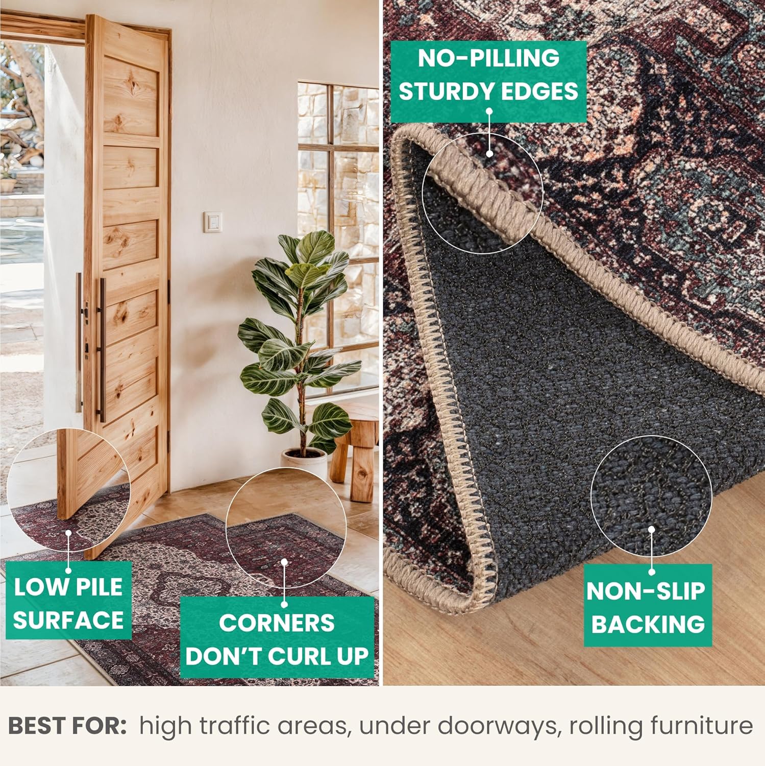 • EASY TO SETUP AND NON-SLIP: This one-piece machine washable rug with non-slip backing attached eliminates any additional setup. Simply unfold and lay flat upon arrival in the desired space. Non-slip backing prevents the rug from moving or sliding without the need for additional rug pad or grippers.