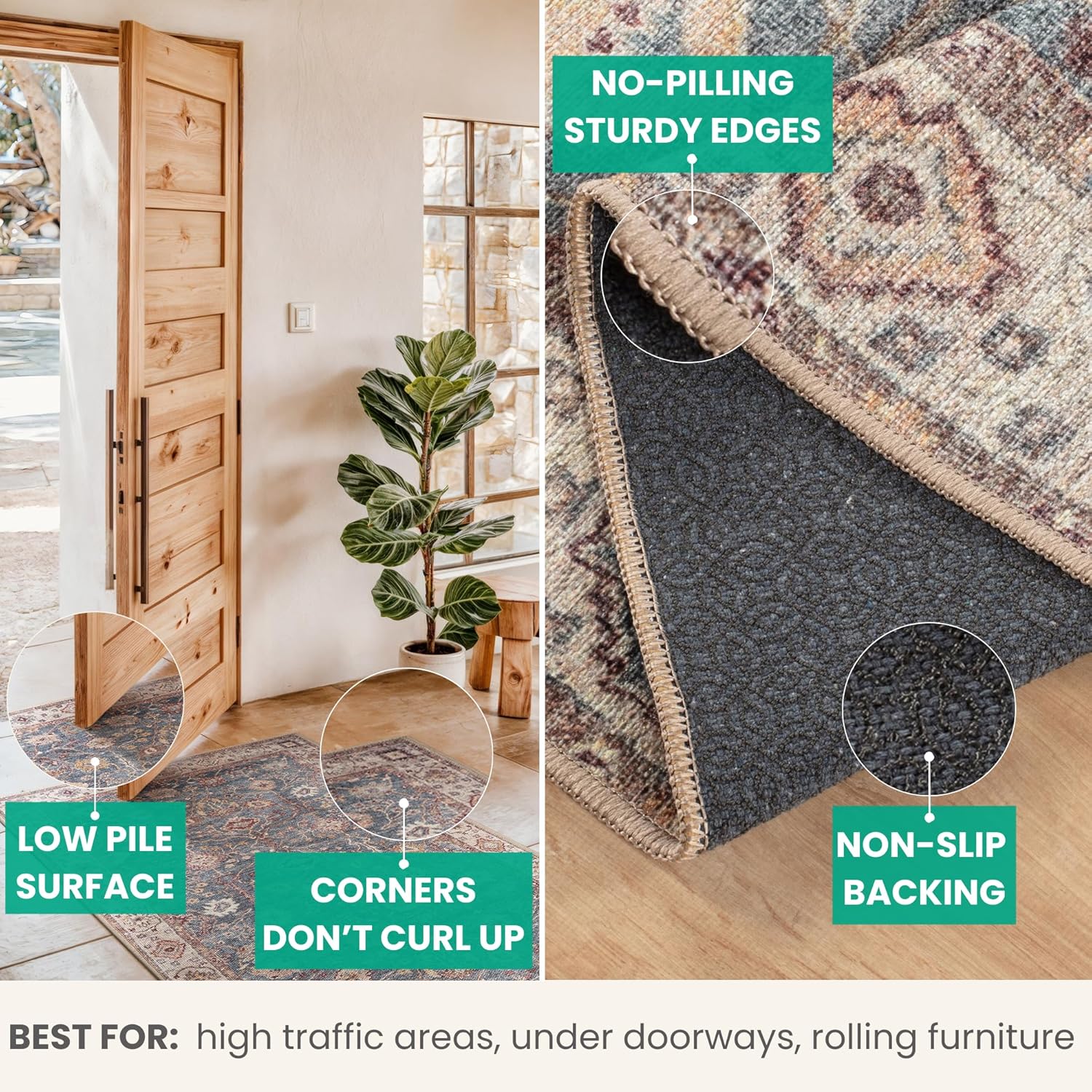 • EASY TO SETUP AND NON-SLIP: This one-piece machine washable rug with non-slip backing attached eliminates any additional setup. Simply unfold and lay flat upon arrival in the desired space. Non-slip backing prevents the rug from moving or sliding without the need for additional rug pad or grippers.